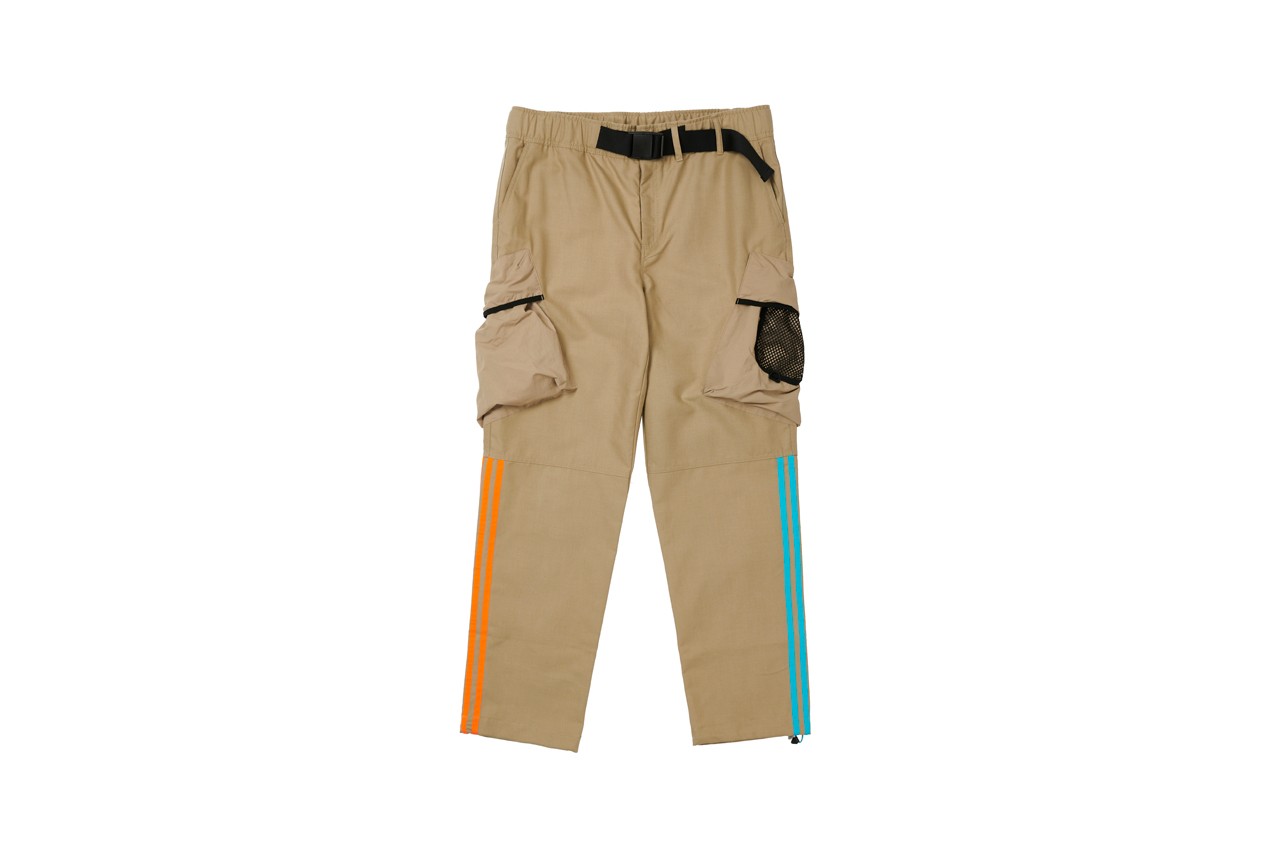 Un ensemble short crewneck ainsi que quatre t-shirts basiques alliant le branding des deux marques sont également présents. Enfin, afin de partir sereinement à l’aventure et pallier à toutes éventualités, Palace appose sa marque sur un sac à dos et une casquette type saharienne.