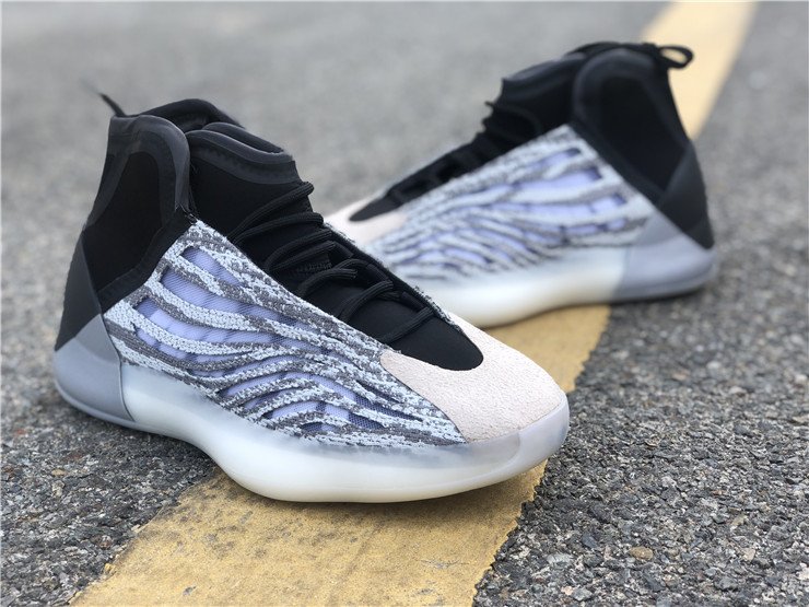 Adidas Yeezy Quantum BasketballCette Yeezy mi-montante est composée de mesh zébré, d’une toe box en daim gris, d’un chausson en néoprène noir ainsi que d’une cage semi-translucide. Une semelle en Boost milky accompagnée d’une gumsole vient finaliser la silhouette de la paire designée par Mr. West. La Adidas Yeezy Quantum Basketball sera disponible le 15 mai 2020 sur le site Adidas ainsi que chez certains retailers de la marque aux Trois Bandes au prix de 250 €.