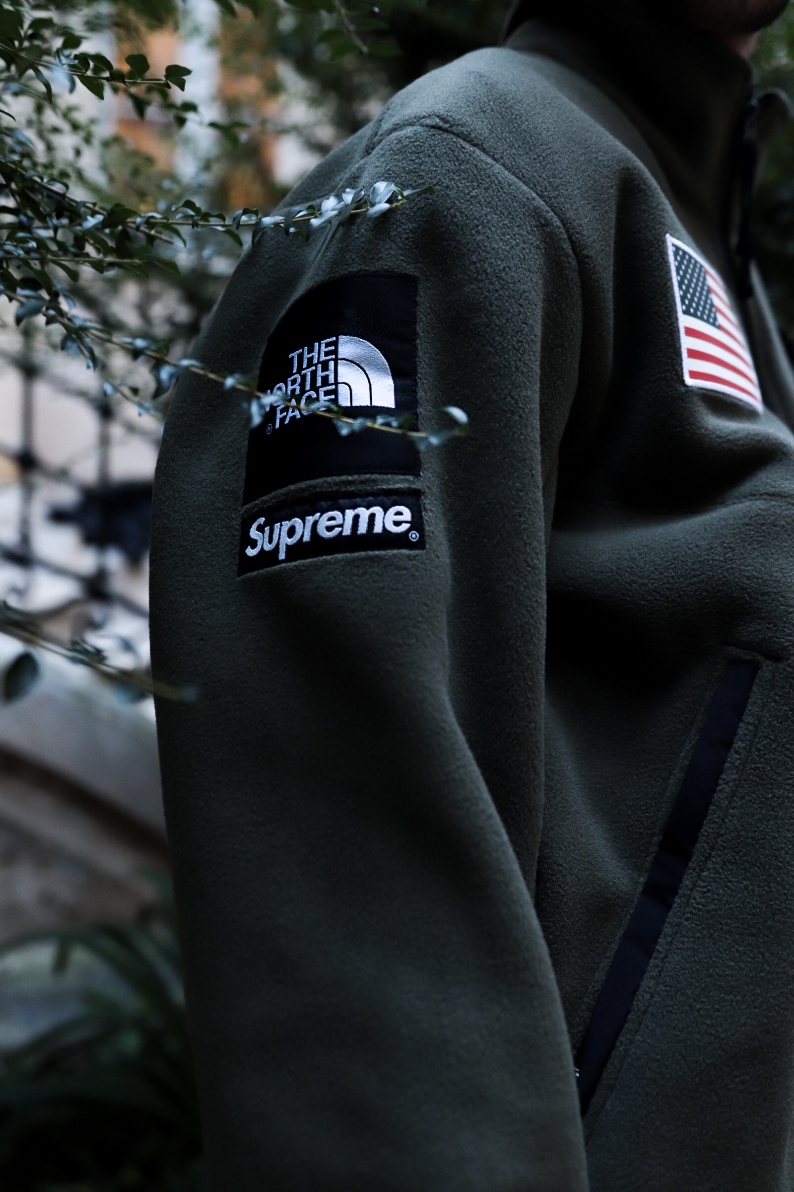 La pièce de la semaine chez Afterdrop Paris est la Supreme/The North Face Expédition Fleece Jacket olive. Cette veste en polaire sortie en 2017 est exclusivement disponible chez Afterdrop pour 1500 €.