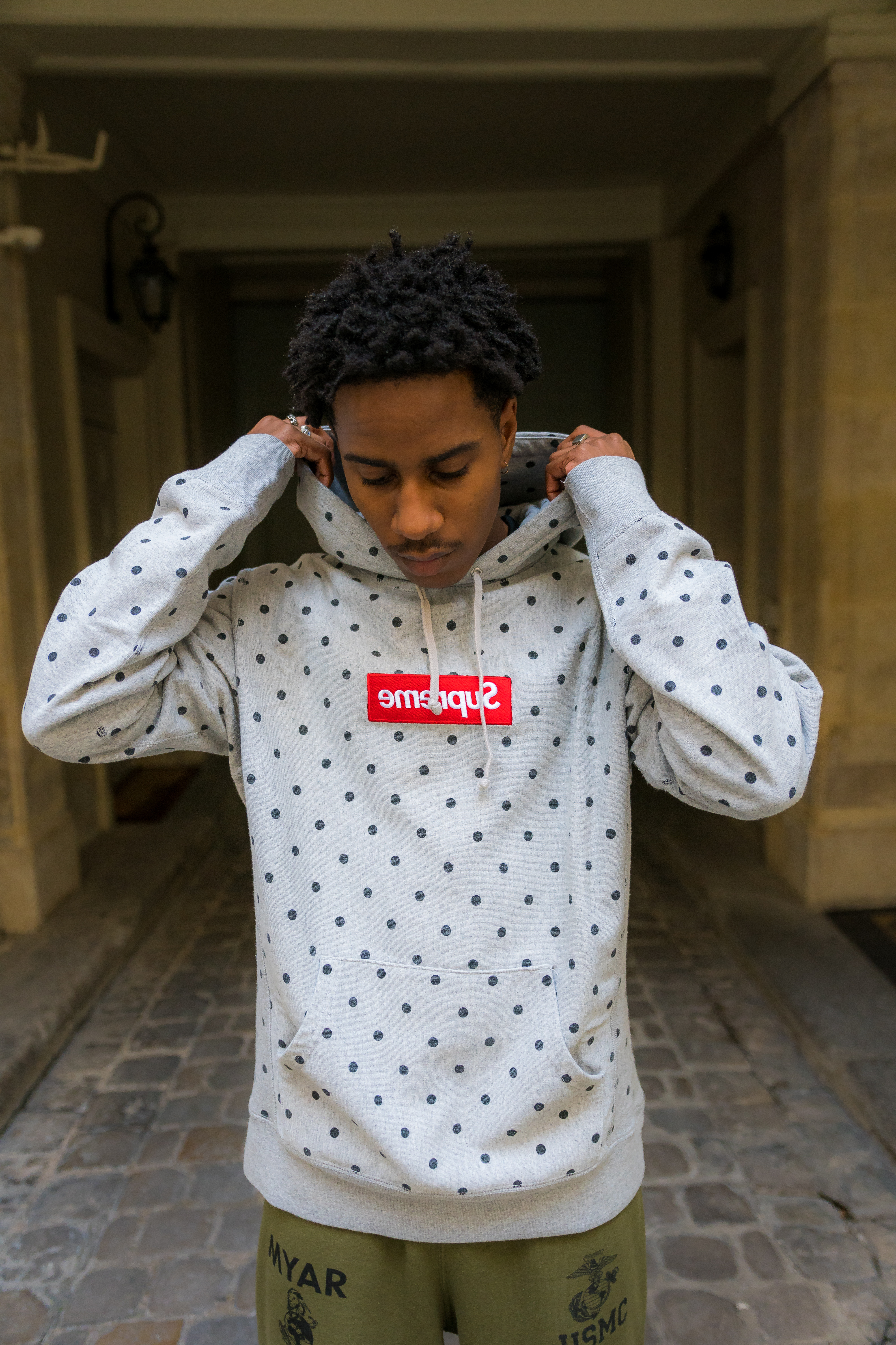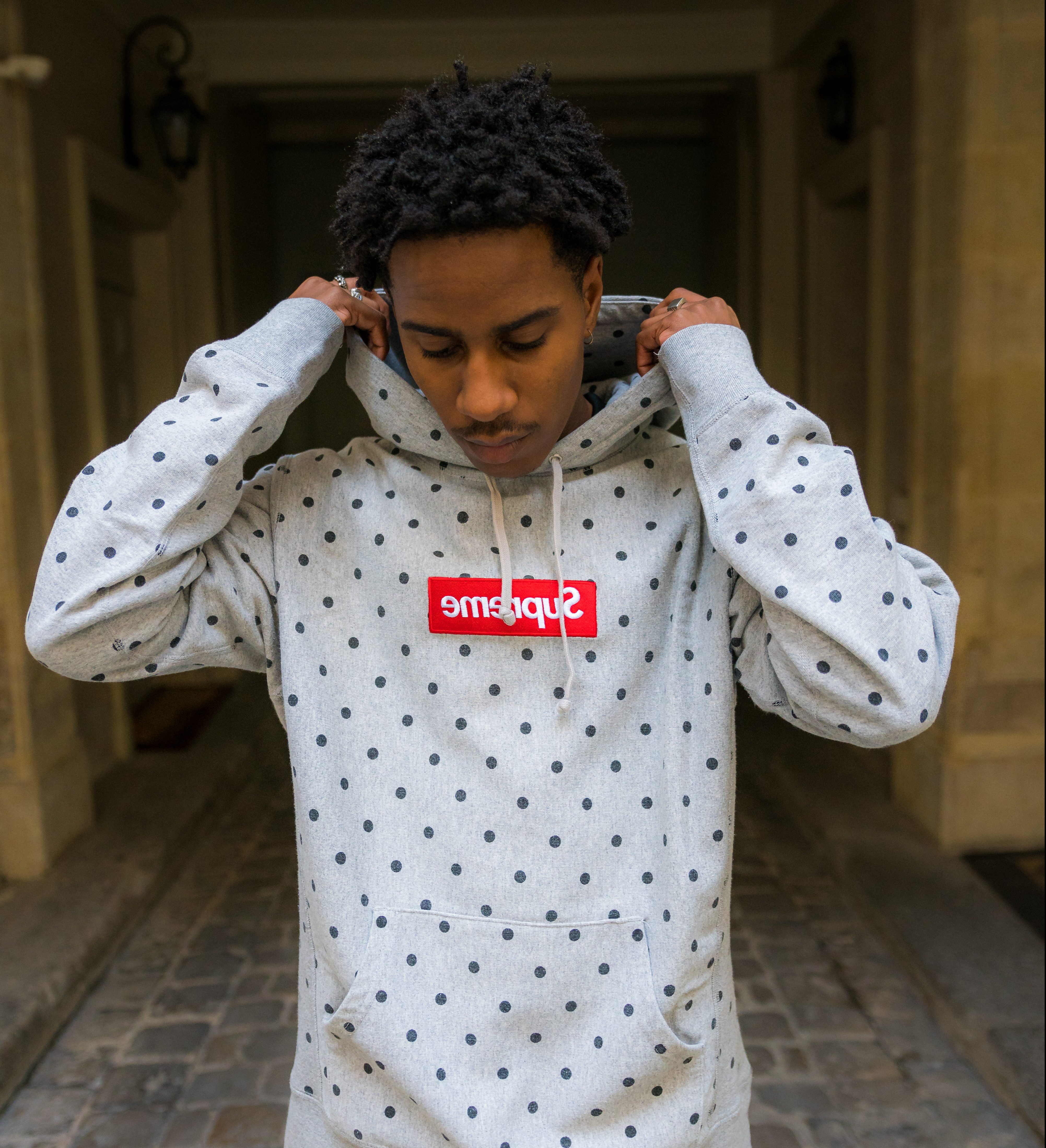 La pièce de la semaine chez Afterdrop Paris, c’est ce Supreme Box Logo Hoodie Polka Dot en collaboration avec Comme Des Garçons. Ce hoodie est sorti en 2012 lors de la première collaboration entre les deux marques. Il est exclusivement disponible chez Afterdrop pour 1500 €.