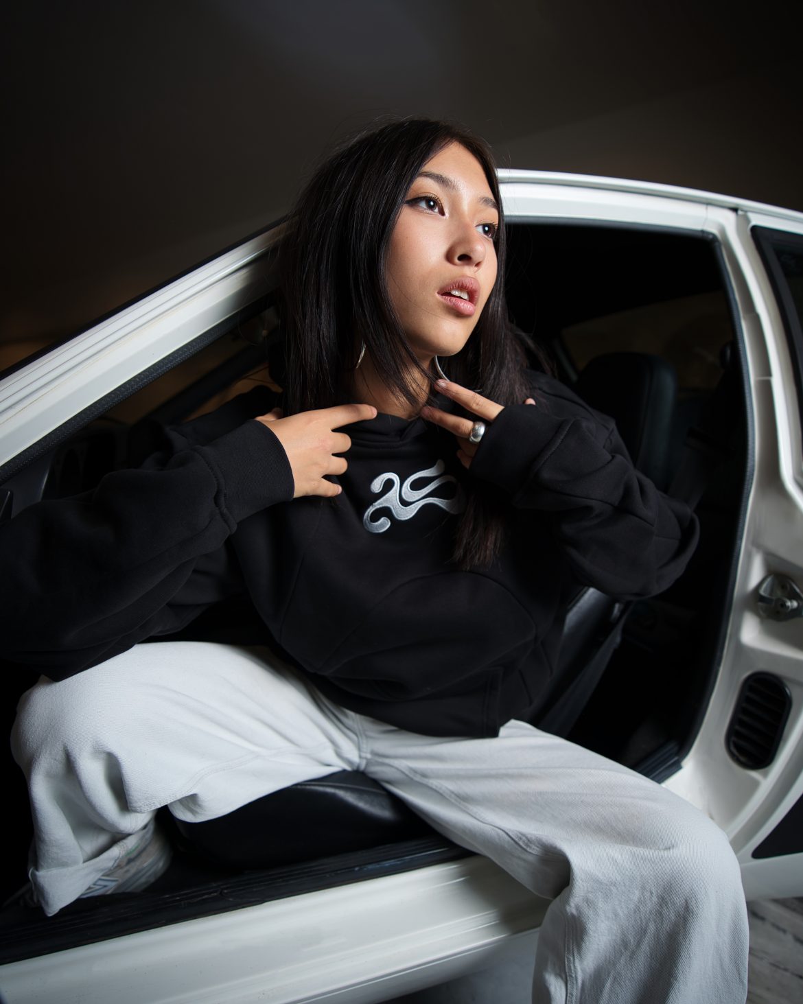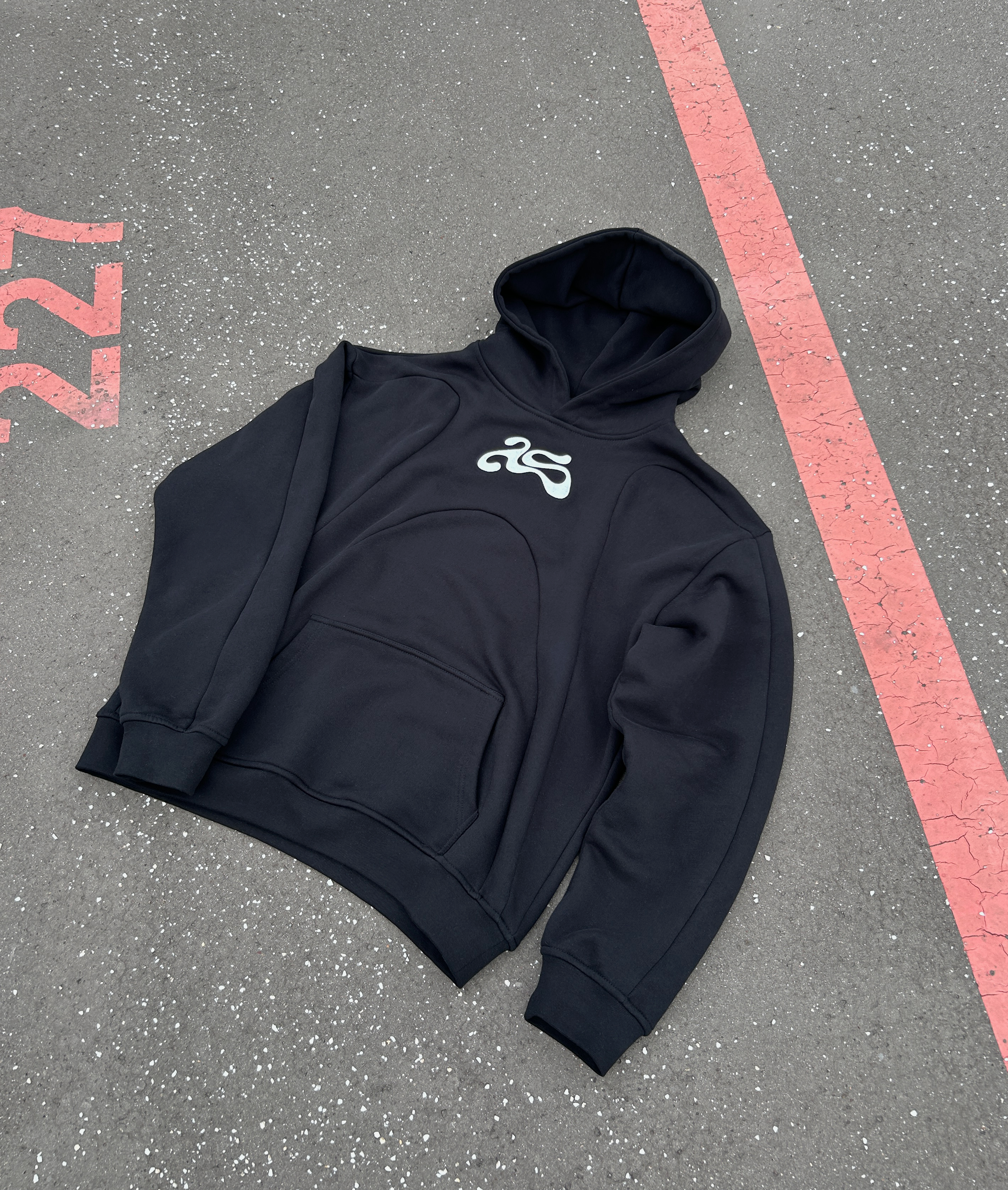 Le hoodie « Raven » est une pièce où sa singularité mise sur son ingéniosité. Il est composé de 15 sections distinctes cousues entre elles avec un surjet pour garantir leur solidité. Tout cela en préservant l’élasticité de la maille, un véritable exploit technique.