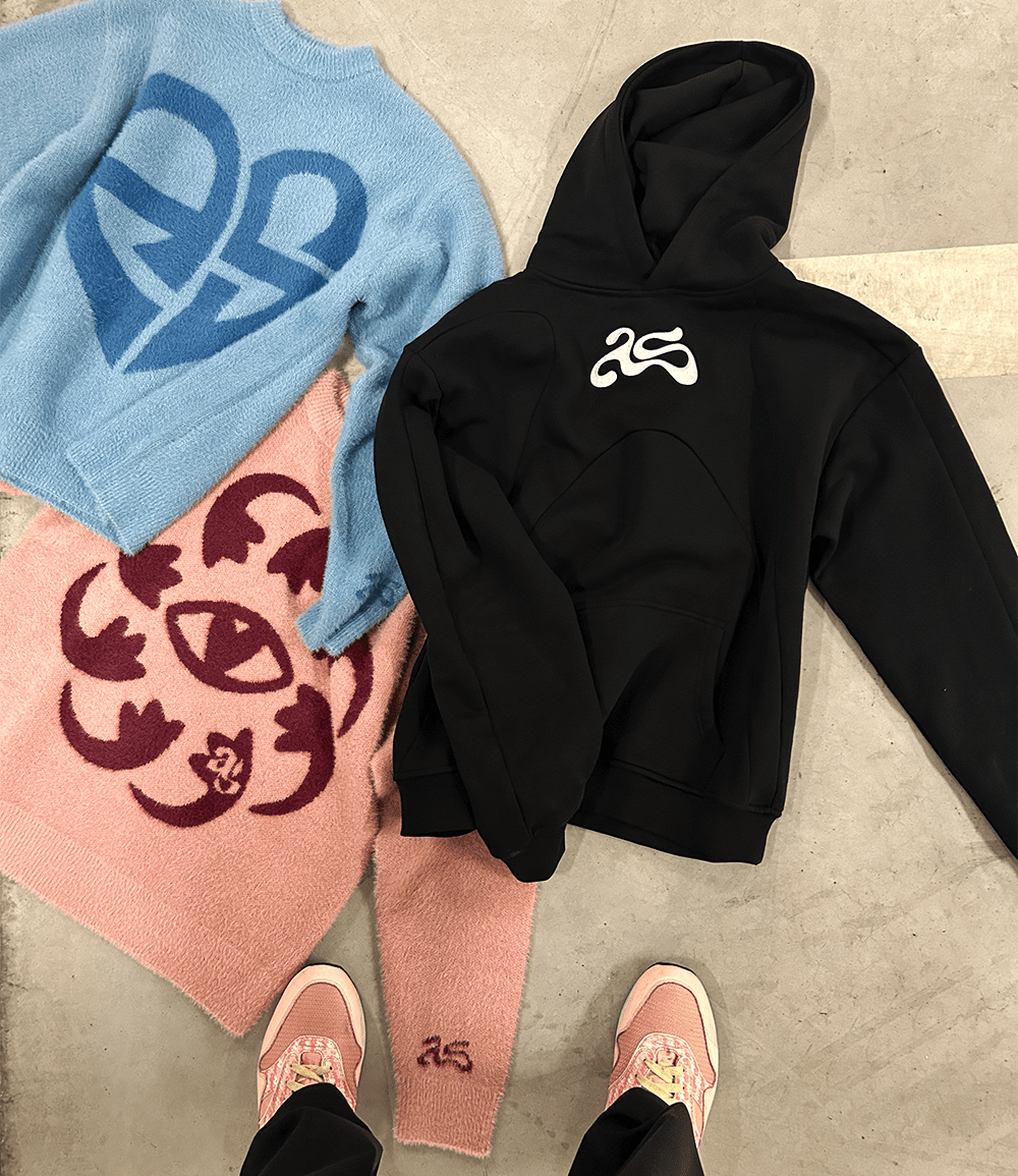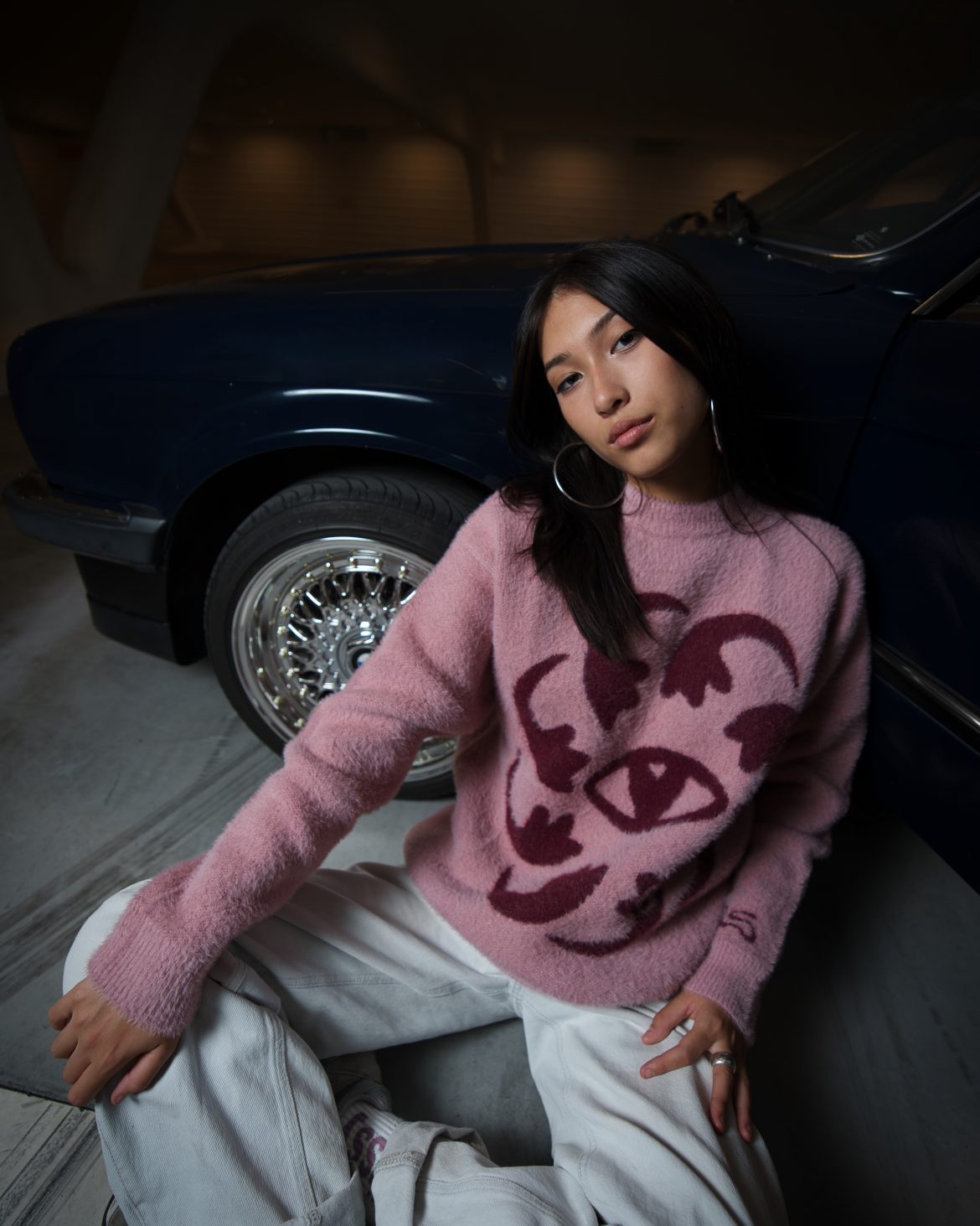 Les deux knits en mohair synthétique ont été façonnés avec soin à l’aide d’un partenaire chinois spécialisé dans l’art du tricot. Après des essais minutieux, le choix de ce textile s’est imposé pour ses poils réguliers, doux au toucher et non irritants. Les knits se déclinent en deux teintes envoûtantes : Quartz Fluff Knit (rose) et Ice Fluff Knit (bleu).