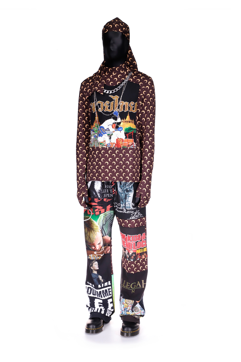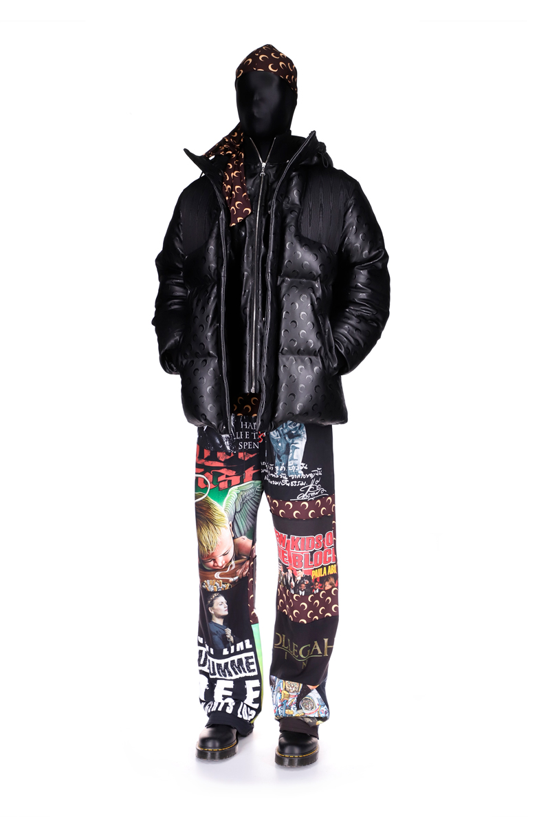 Le choix des pièces et leur design se veulent assez audacieux, on retrouve par exemple une doudoune et un pantalon en cuir, une robe, des pièces en denim ou un legging arborant un monogramme « moon ». Un durag, une casquette et une cagoule, qu’on a pu apercevoir dans l’extrait d’un nouveau morceau que Rocky a dévoilé sur Instagram avant de le supprimer, sont également disponibles ! La collection a été conçue à 75% avec des matériaux recyclés.