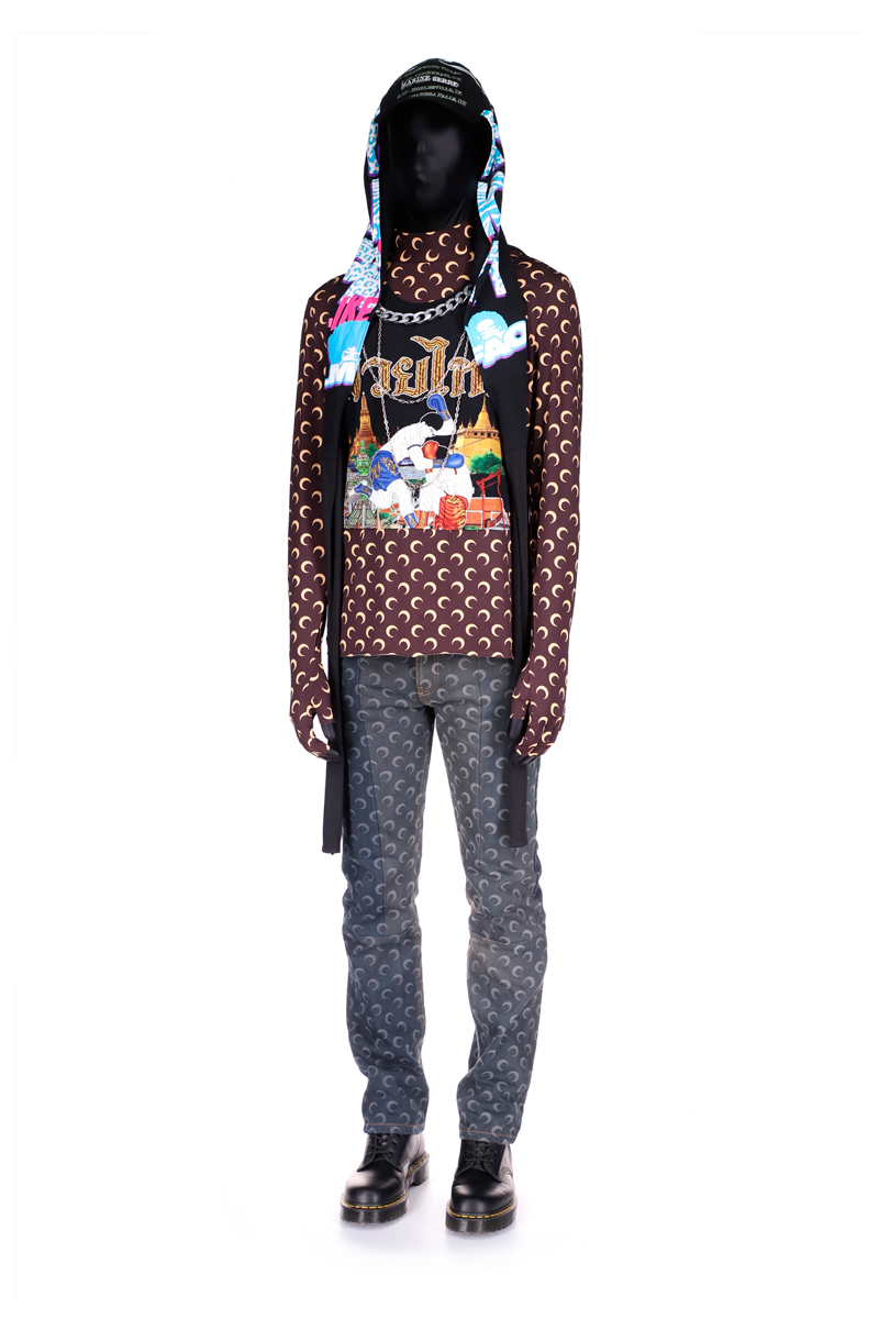 La styliste française Marine Serre explique que les origines de cette collaboration viennent d’intérêts communs, de conversations authentiques et de sentiments de communauté entre sa marque et AWGE, le collectif New-Yorkais. On nous propose donc un peu plus d’une dizaine d’items inspirées du look et des goûts d’A$AP Rocky et imaginées par Marine Serre.