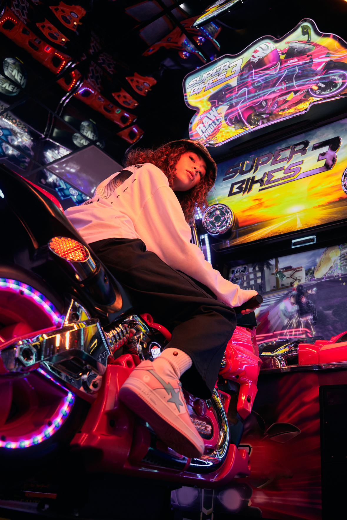 On découvre ce nouveau pack BAPE STA à travers un shooting dans une salle d’arcade rappelant les origines japonaise de la marque. On retrouve alors aux pieds des modèles 3 paires aux couleurs pastel. Ces colorway nous rappellent les paires « Easter » de chez Nike. En effet, 3 déclinaisons sont prévues. Chaque paire présente une dominance de bleu, de rose ou de vert contrastant avec le logo Bape et les lacets. L’upper est en cuir souple. Et comme sur toutes les BAPE STA récentes, on retrouve le logo Bape pressé en blanc sur le talon.