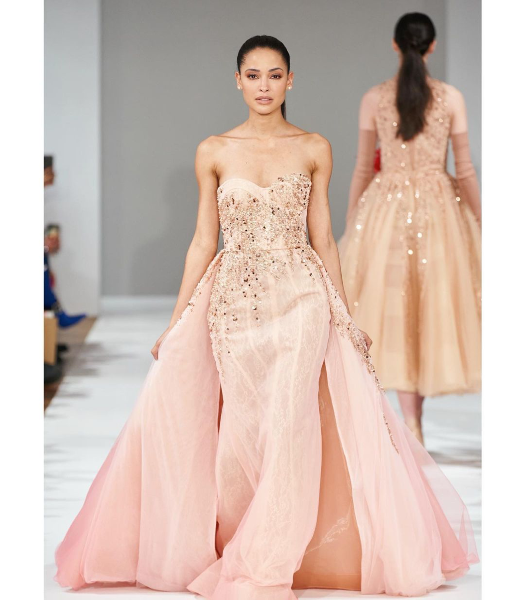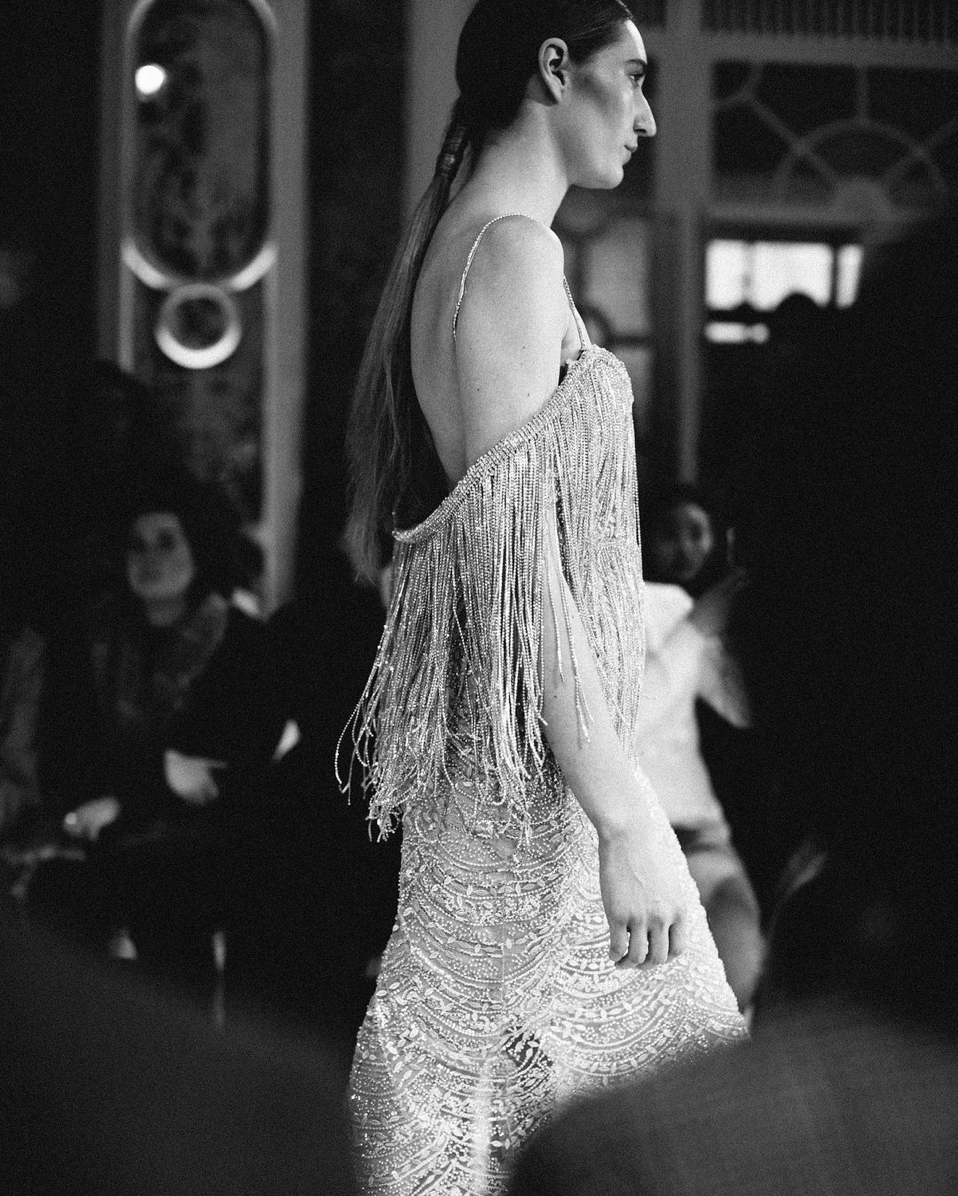 Iann Dey est une marque de haute couture mexicaine créée par Iván Gallegos et David Marquez. Aujourd’hui elle est l’une des marques de mode les plus représentatives du Mexique. En effet, leur travail est minutieux, chaque pièce est faite à la main, brodée et cousue dans l’atelier. Iann Dey reflète la sensualité, l’élégance mais aussi la polyvalence. Au fil du show, on peut découvrir des robes longues à paillettes, à plumes ou encore à sequins dans diverses formes et couleurs. Une chose est sûre, les deux créateurs savent en mettre plein les yeux.