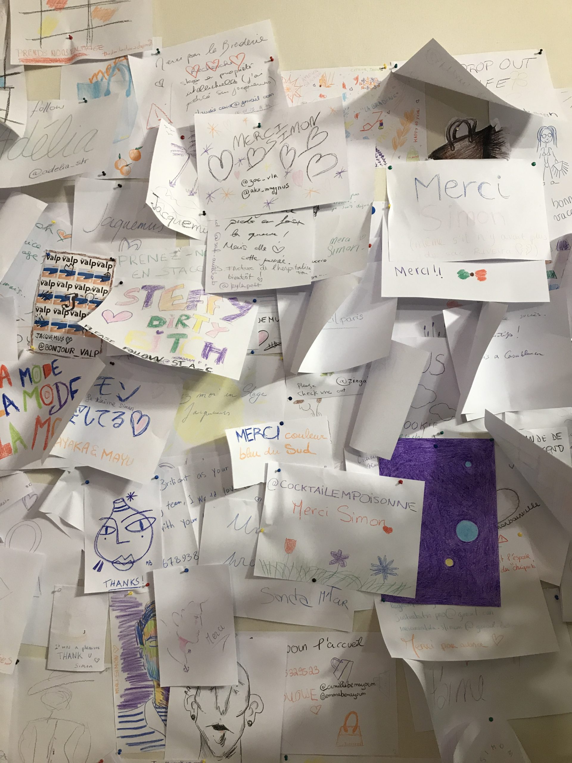 Dès notre arrivée, une équipe revêtant un sweat bleu marine sur lequel « JACQUEMUS » est brodé nous emmène directement au deuxième étage. Là, toutes les collections les plus emblématiques sont soigneusement rangées par couleur.  Des premières collections aux dernières, des Filles en blanc à La Riviera en passant par le Gadjo, on est face à 10 ans de travail et d’évolution de la marque.