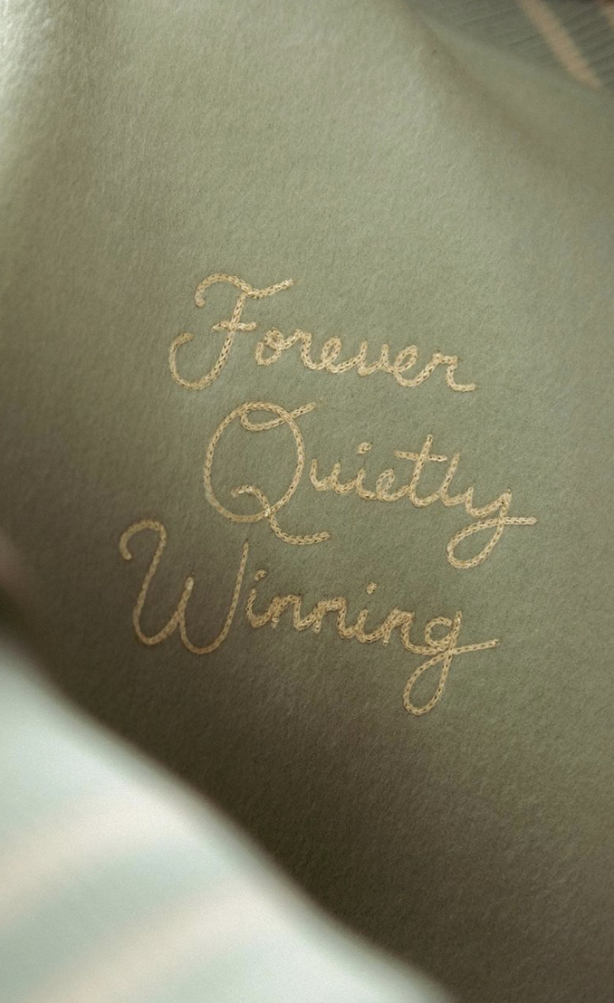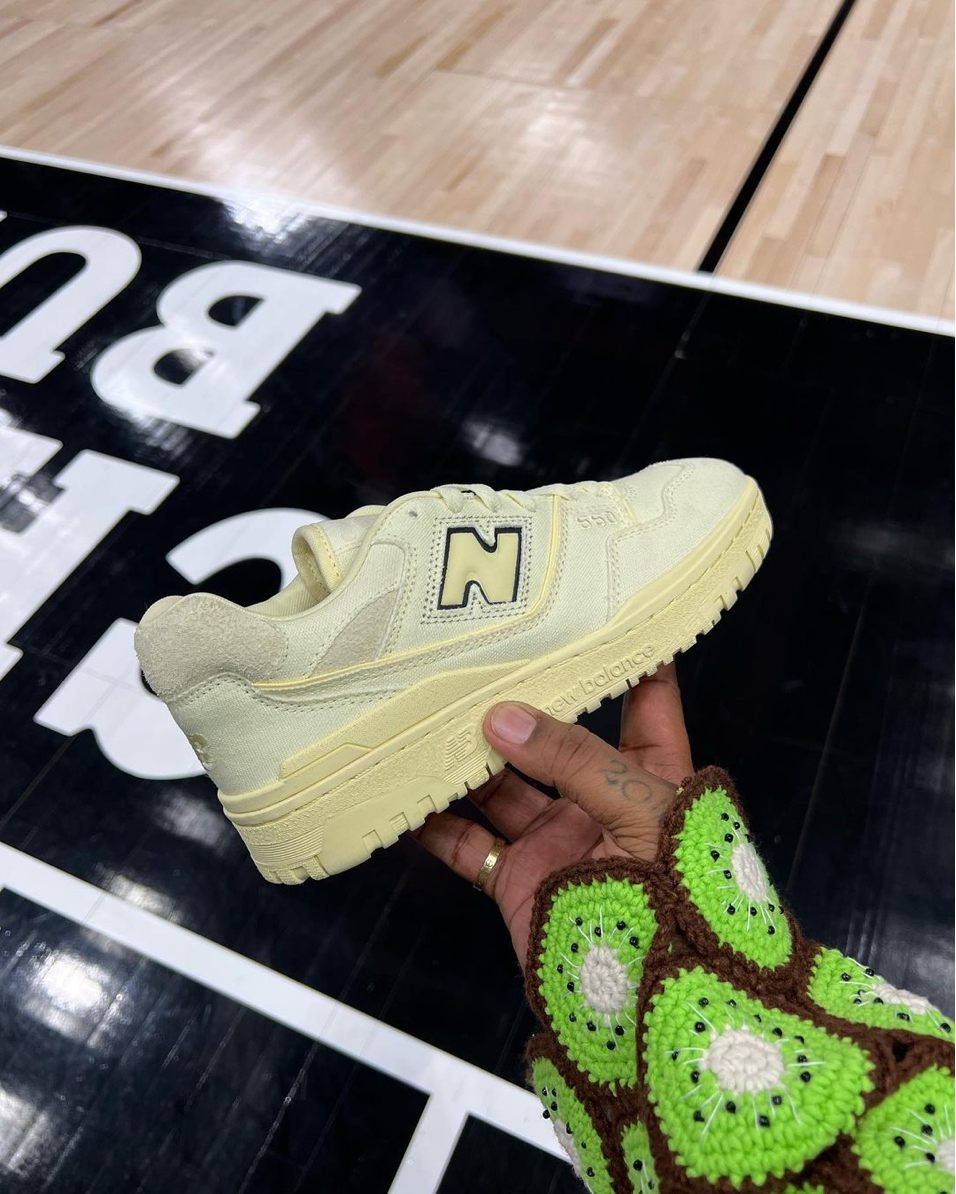Deux coloris sont attendus : le premier « Penny Cookie Pink » avec une alliance de matières rose, beige et vert et le deuxième « Baby Shower Blue » dans un mélange de tons pastels rose, crème et bleu. On retrouve une semelle blanche accompagnée d’une gumsole. En termes de finitions, à l’arrière est disposé un liseré argenté « New Balance » ainsi que les initiales « JFG » et »Inside Voices » sur les talons. Les deux paires seront accompagnées d’une boîte spéciale.