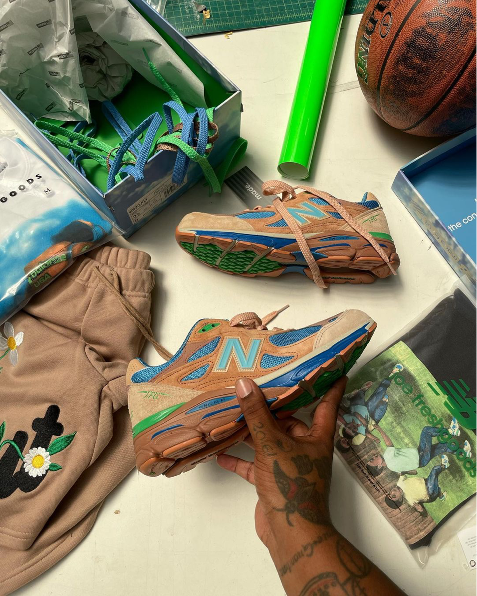 Il revient une nouvelle fois… le designer n’en est pas à sa première collaboration avec la firme bostonienne New Balance. Après avoir travaillé une 990v3, une 992, une 2002r et une 550, Joe Freshgoods s’attaque maintenant à la 9060. Toujours dans un esprit d’originalité, de couleurs mais surtout de nouveauté.