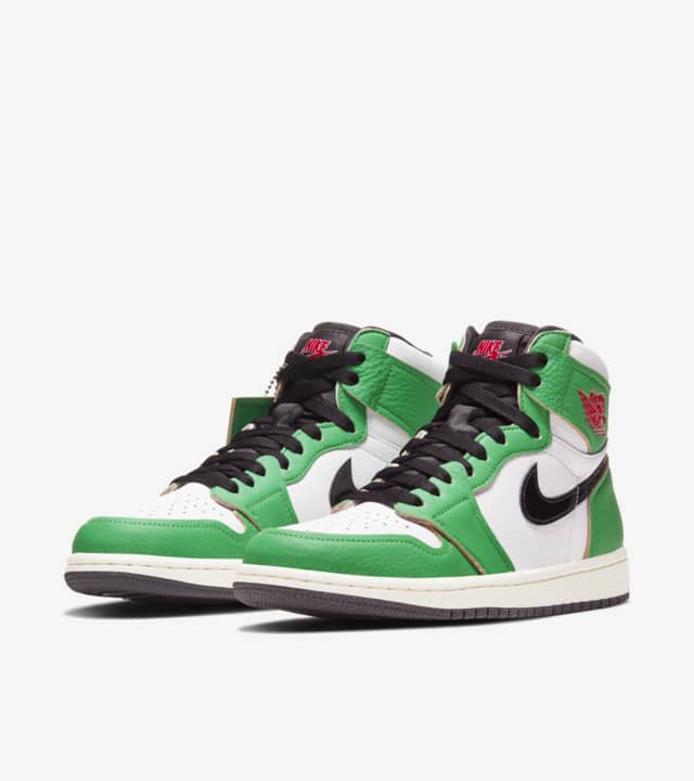 Annoncée avec la collection sneakers hiver 2020 de Jordan Brand, cette nouvelle déclinaison est uniquement disponible en tailles femmes. La paire vêtue de cuir blanc et vert a été imaginée en hommage au record de 63 points marqués par Michael Jordan en 1986 face aux Celtics de Boston. Découvrez ci-dessous une liste des retailers chez qui vous pourrez tenter d’acheter la Air Jordan 1 WMNS Lucky Green. L’article sera régulièrement mis à jour. Bonne chance