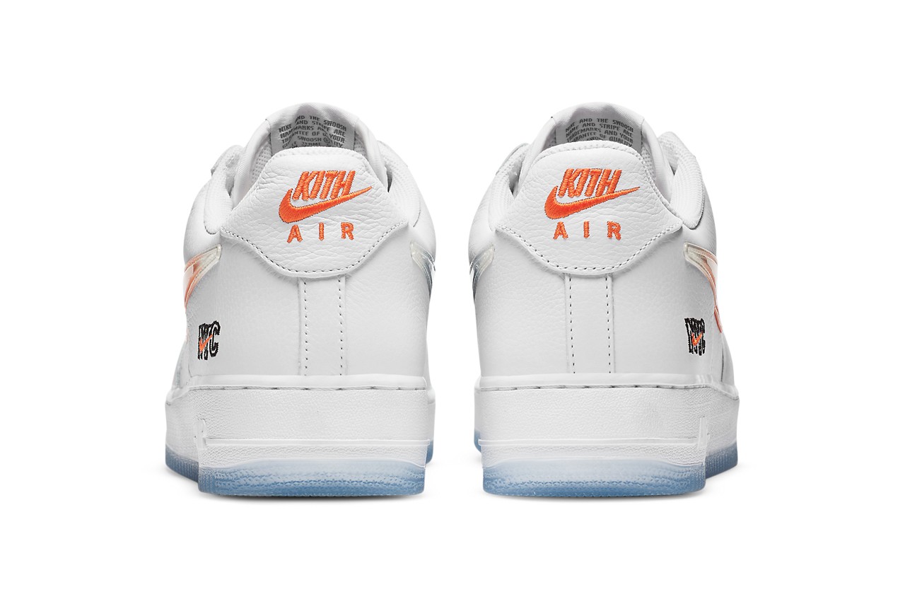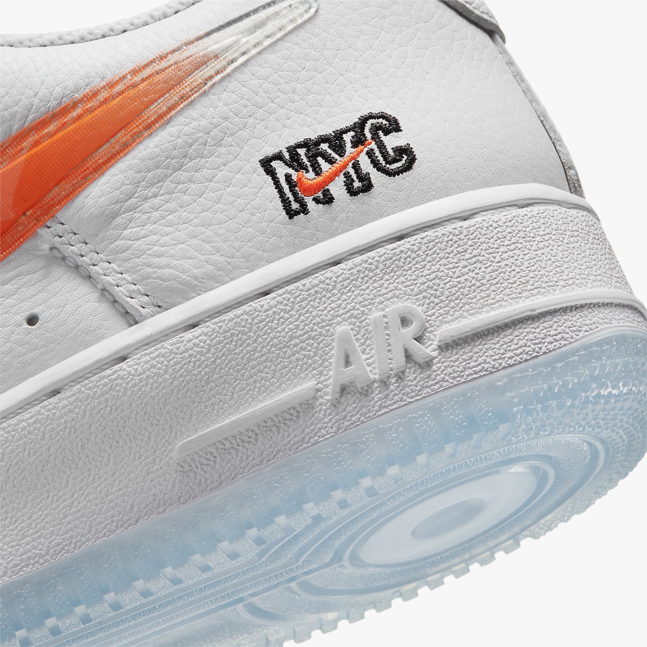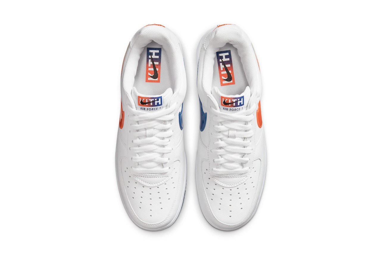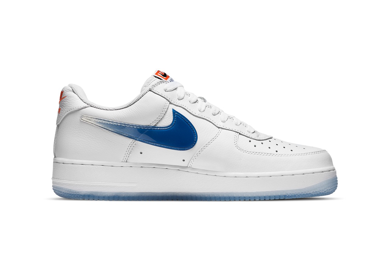 Teasée depuis un certain temps maintenant, la Air Force 1 NYC va sortir en même temps que la collection d’apparel. Elle présente une base en cuir blanc. Base sur laquelle on repère les différentes couleurs de l’équipe new-yorkaise. Les points marquants de la paire viennent de son Swoosh, revisité en TPU translucide reprenant celui de la Taïwan, ainsi que de sa broderie « NYC » sur le talon et le branding.