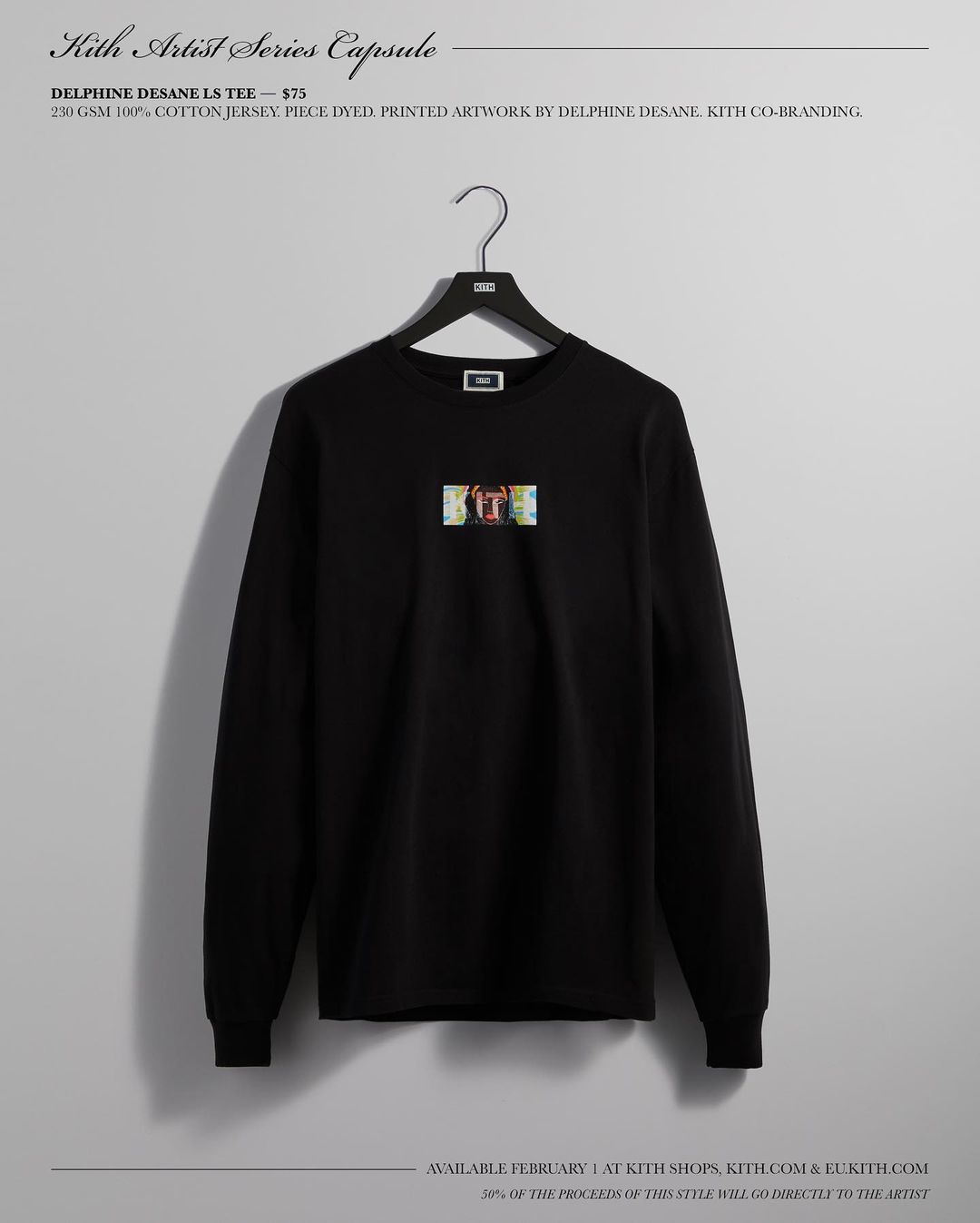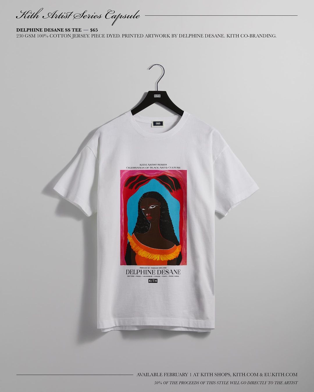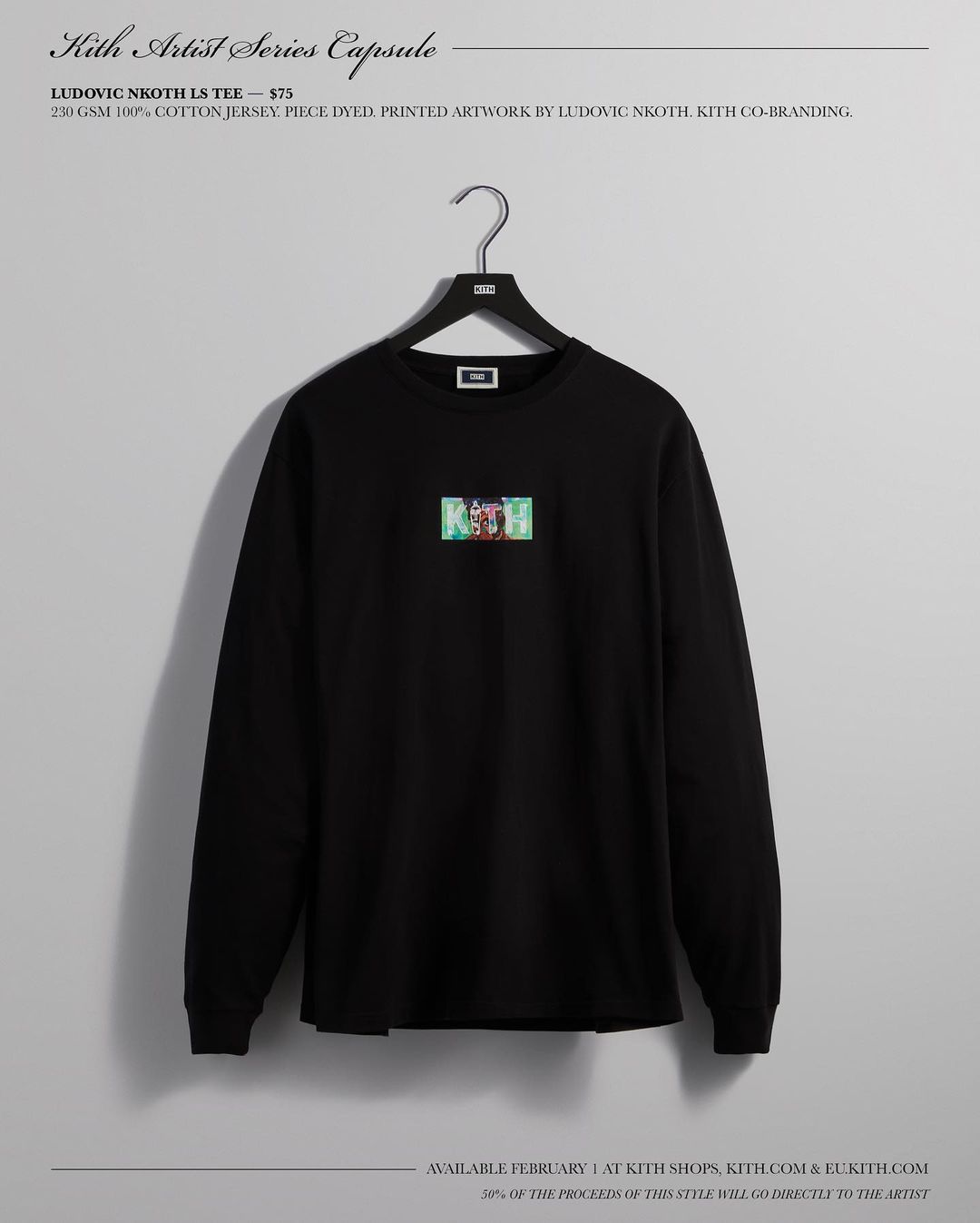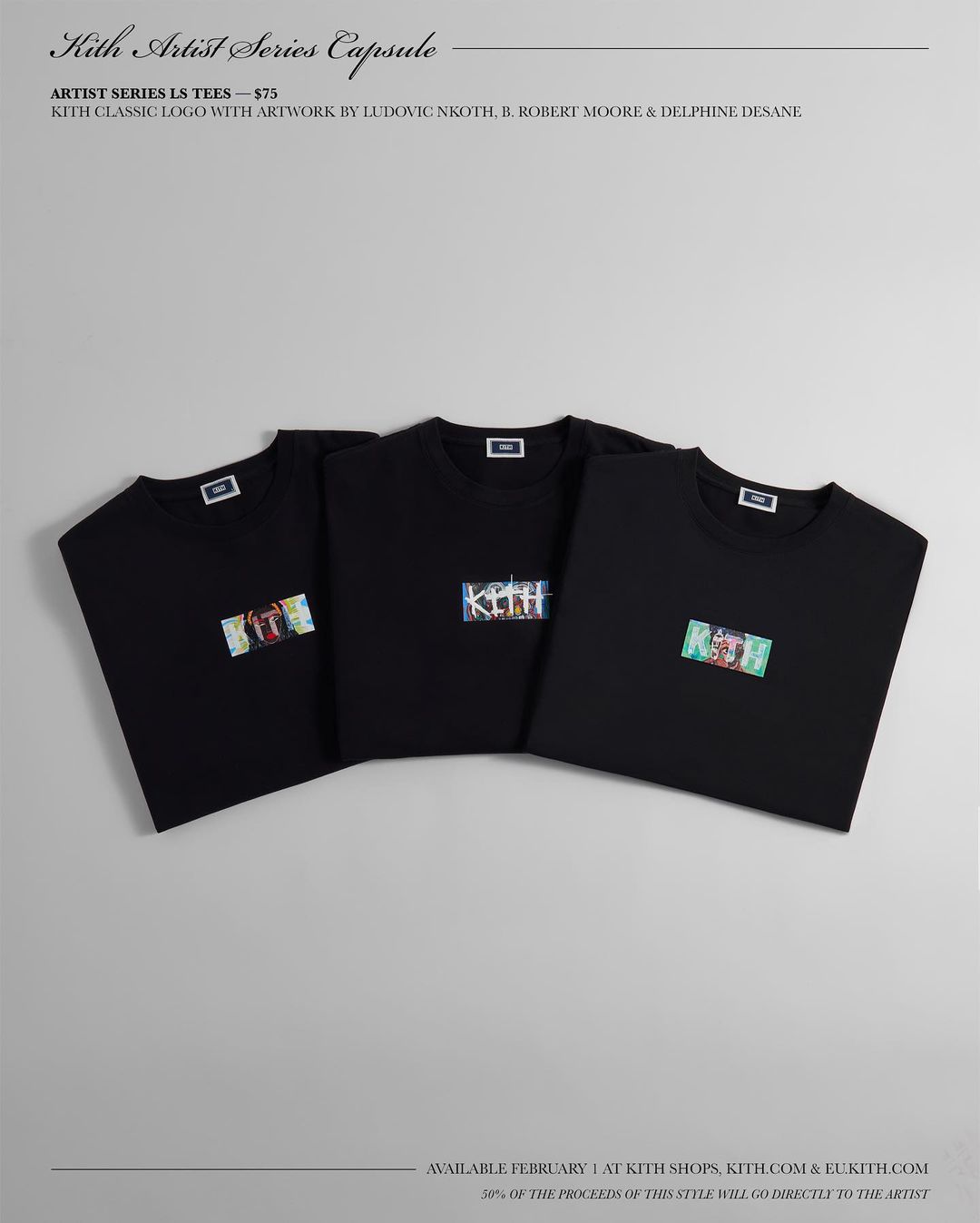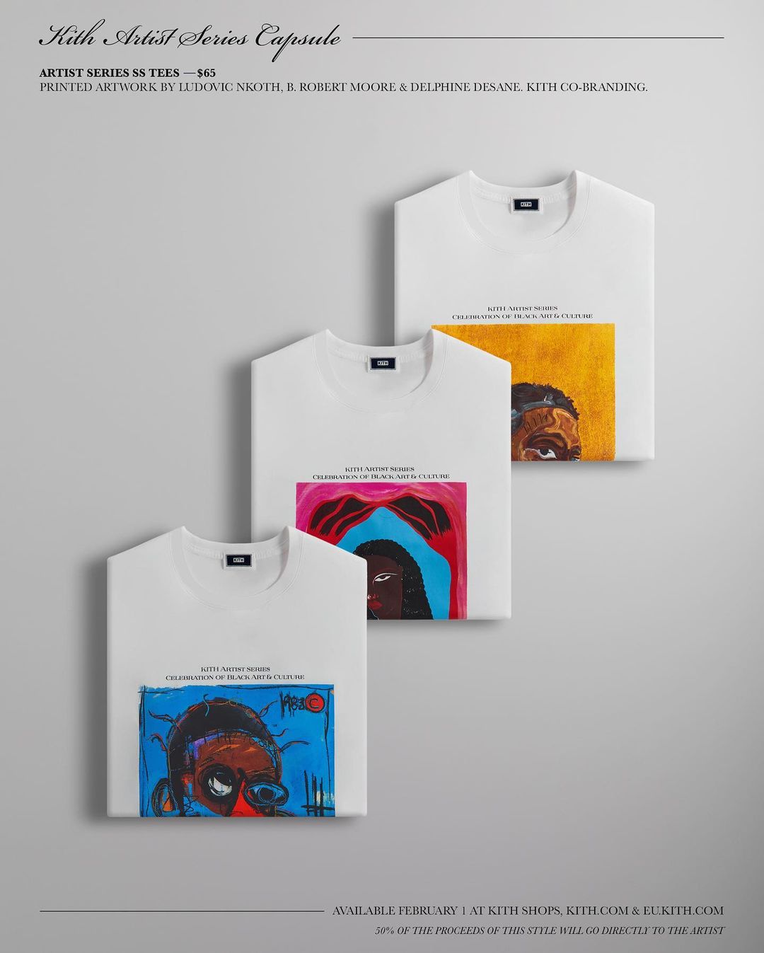 Kith est, comme tous les ans, au rendez-vous pour le Black History Month. Une commémoration qui rend hommage aux accomplissements de la population afro-américaine ayant marqué l’histoire des États-Unis, ainsi qu’à sa lutte pour ses droits civiques. C’est donc dans le cadre de ce mois commémoratif que Ronnie Fieg a sélectionné trois artistes indépendants, Ludovic Nkoth, B. Robert Moore et Delphine Desane, afin de créer une capsule de tee-shirts noirs ou blancs, à manches courtes et longues. Sur ces tee-shirts sont apposées les créations des trois artistes sélectionnés. Chaque d’entre eux recevra 50% des recettes générées par la vente de ces créations. De plus, leur travail sera exposé au sein d’une galerie aménagée dans le magasin KITH SoHo à New York.