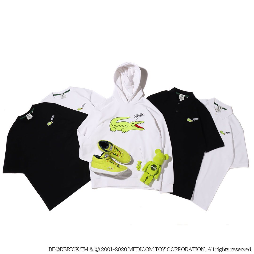 La collection Lacoste x Atmos « Street Tennis » sera disponible le 3 juillet 2020 en exclusivité sur le site de Atmos Tokyo. Il vous faudra compter au minimum 90€ pour les vêtements, 120€ pour le Be@rbrick et 185€ pour la Balsa. Bon cop !