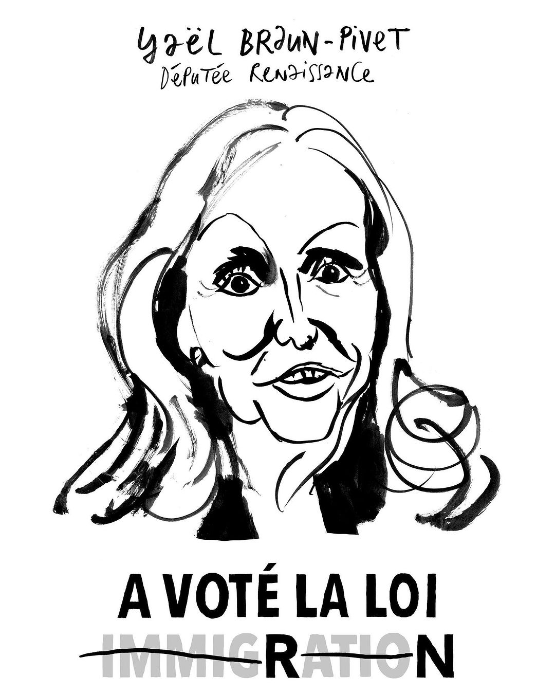 Récemment, une soixantaine de dessinateurs ont mis en œuvre une initiative artistique dans le but de dénoncer la Loi Immigration, en transformant chaque visage politique en une caricature, outil de protestation. Chacun des 349 députés ayant voté en faveur de ce projet de loi a donc méticuleusement eu droit à la réalisation de son portrait.