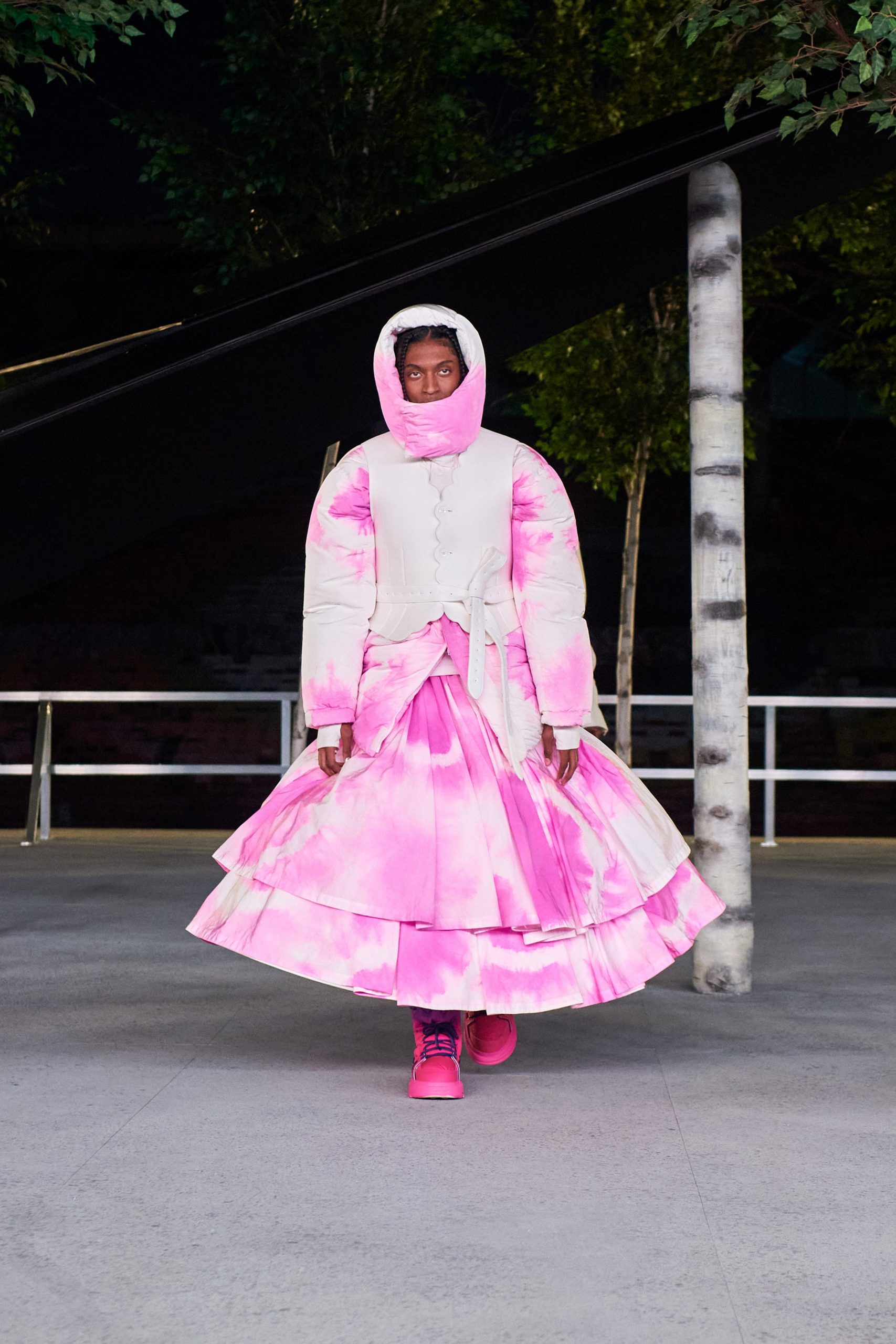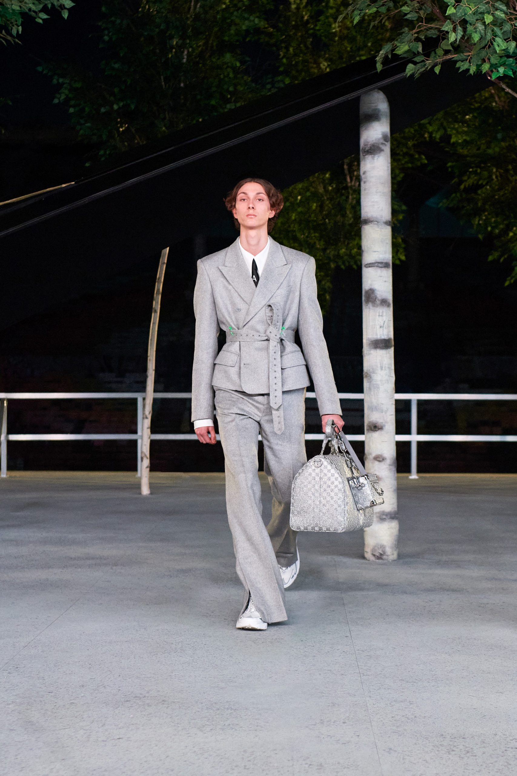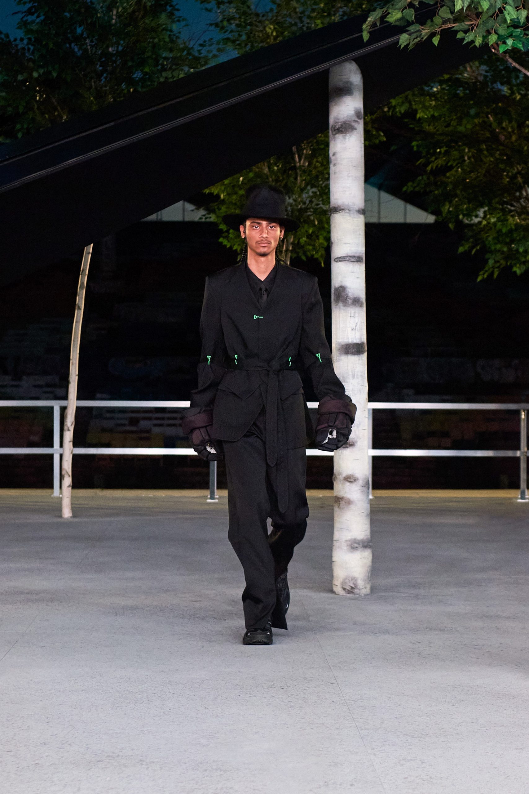 Avec Virgil Abloh, toutes les références sont justifiées, tant dans la mode que dans la bande-son. Zigzaguant entre les bouleaux du catwalk sous « Momma I’m so sorry » des Clipse, les silhouettes tirent leurs inspirations du légendaire Amen Break, d’où la collection même tient son nom. Ce fameux solo de batterie de 1969 aura changé l’histoire du hip-hop et de la musique électronique grâce à Gregory C. Coleman, du groupe de funk et de soul The Winstons, en étant samplé des milliers de fois. L’entièreté du spectre coloré est exploitée, sous le signe de la réinterprétation des préjugés sociaux.