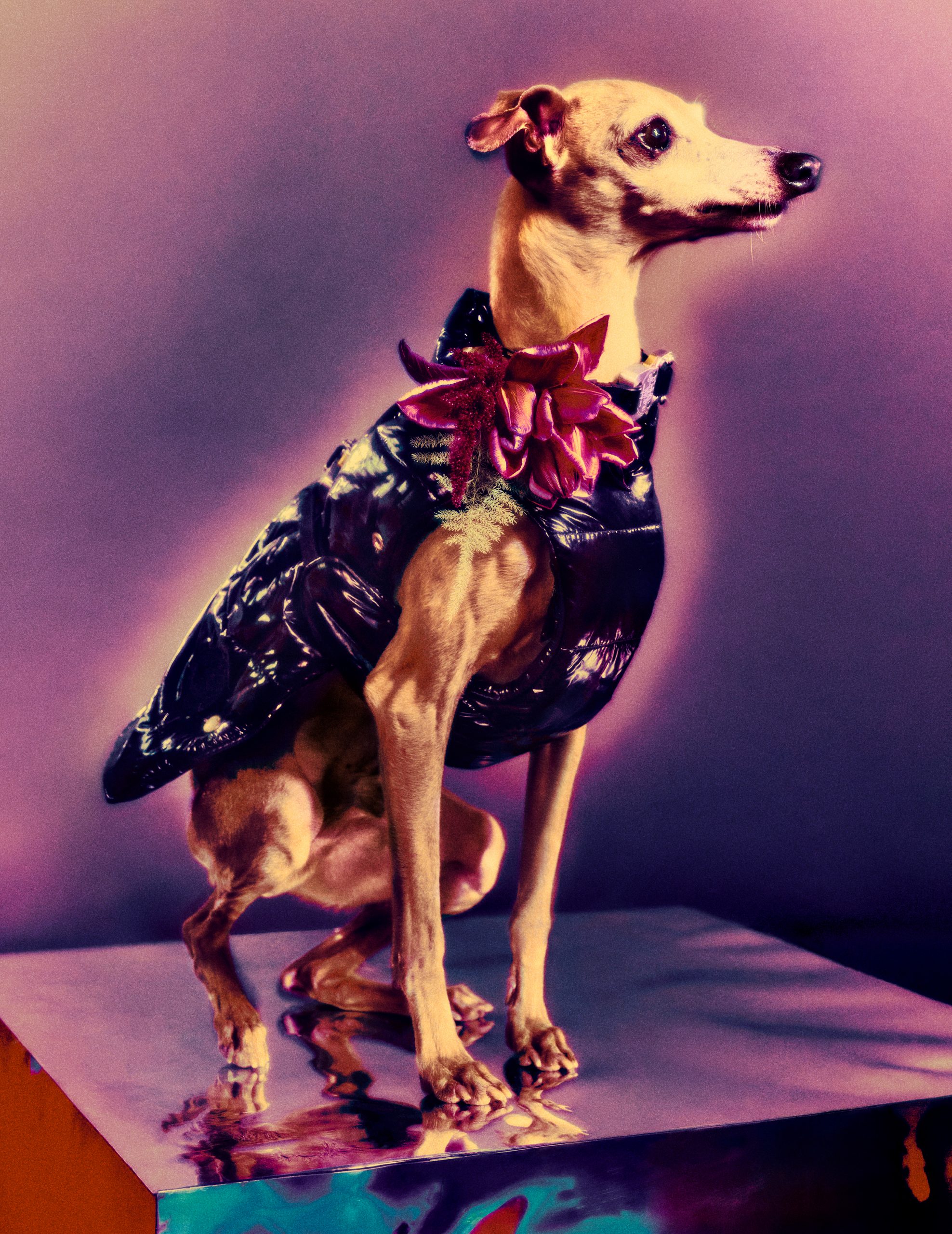 Les deux marques choisissent bien la saison en proposant une collection principalement faite de doudounes, qu’elles soient à manches ou non, longues ou pas. Aux mêmes couleurs se contrastent leur nylon laqué ultra-brillant, au cuir des pantalons, mais aussi au coton des sweats à capuche. La collection se complète avec des t-shirts, un bomber, un pull et des bottines, ainsi que des ceintures, bonnets, bracelets, coques de téléphone, lunettes et un sac à bandoulière. Il y a même des doudounes, une laisse et un collier pour votre chien (oui).