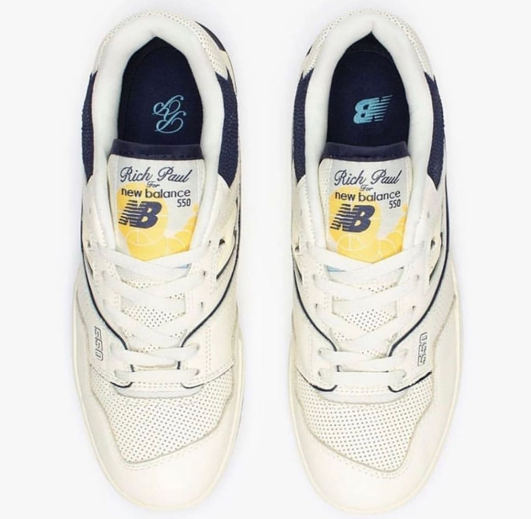 La New Balance 550 issue de cette collaboration avec Rich Paul arrivera dans les prochains mois chez New Balance et chez certains revendeurs pour environ 120 €.