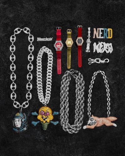 À l’instar de son compère Pharrell, Nigo se sépare de certaines de ses chaînes du début des années 2000. Mais aussi de G-s hock colorées serties de diamant et d’Audemars Piguet. Toujours de l’époque de BBC ICE CREAM, Nigo se déleste d’une grande partie de sa bagagerie Goyard. Côté maroquinerie de nombreuses pièces Louis Vuitton désigné spécialement pour le japonais seront disponibles à la vente comme les sacs à vinyle Louis que Nigo présentait dans son interview avec le média Complex.