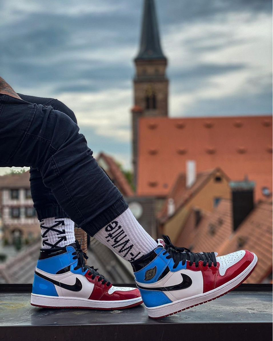 La « Bred Patent » sera similaire aux Jordan 1 High « Fearless » et « UNC Patent » sorties en 2019. L’effet cuir vernis, qui donne un brin de fraîcheur au modèle, séduit aujourd’hui beaucoup de fans de sneakers.