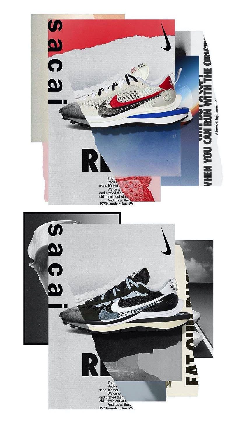 Les Sacai x Nike VaporWaffle Black et Royal Fuchsia sortiront le 6 novembre au prix de 180 € par paires.