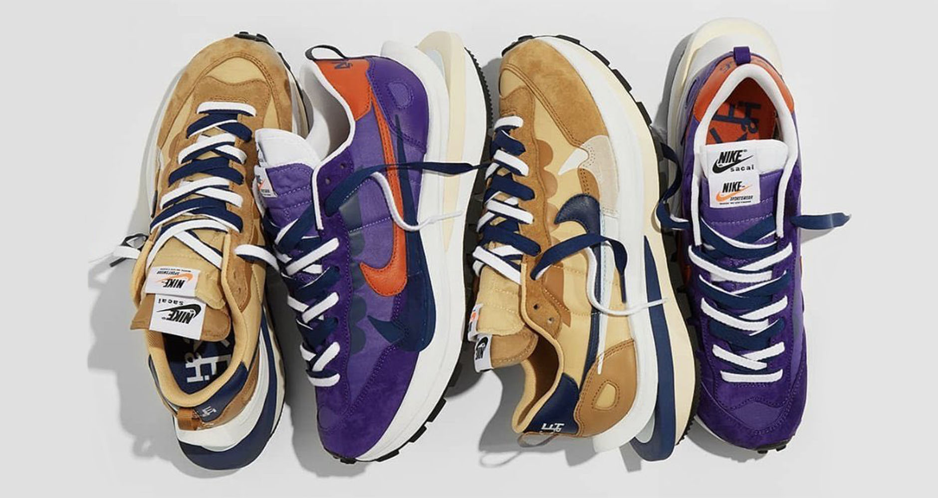 Découvrez où acheter les Nike VaporWaffle x Sacai “Sesame/Blue Void” & « Dark Isis » qui sortiront jeudi 29 avril au prix de 180€.