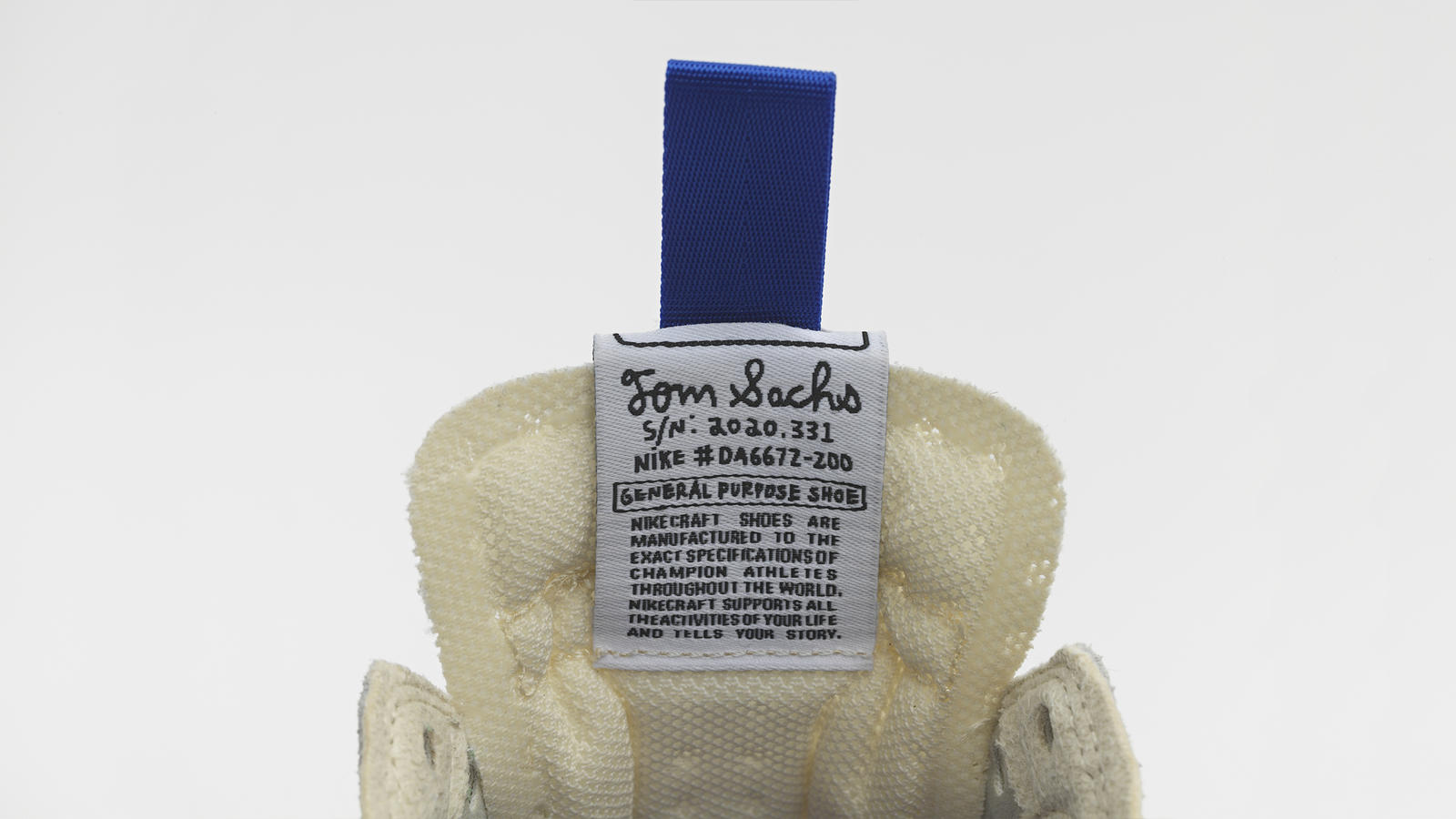 Dans le futur, la NikeCraft « General Purpose » de Tom Sachs sera déclinée en plusieurs coloris. La version de lancement, la Studio, est dotée d’une semelle intermédiaire en caoutchouc gomme, d’une tige blanche et de brides bleues. Le GPS NikeCraft sera disponible le 10 juin sur nikecraft.com aux alentours de 110€.