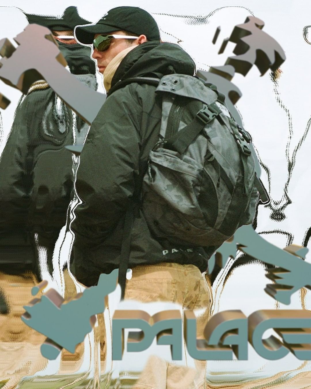 Afin d’accompagner les montures, on retrouve des pièces textiles ornées du logo de la collection. Le logo circulaire d’Oakley voit ici son inscription remplacée par celle de Palace. Au programme : des pièces techniques orientées outdoor dans des tons noirs, gris et ocres. Notre pièce préférée reste l’ensemble veste et short avec des poches bombées semblables à des verres de lunettes. Mais vous pourrez retrouver aussi des vestes et pantalons aux inspirations plus workwear ainsi que des pièces plus simples comme des hoodies toujours dans les mêmes tons ainsi que des t-shirts ornés de têtes de mort. Côté accessoires, retrouvez en plus des deux paires de lunettes, des casquettes, des bonnets ainsi que des sacs à dos techniques.