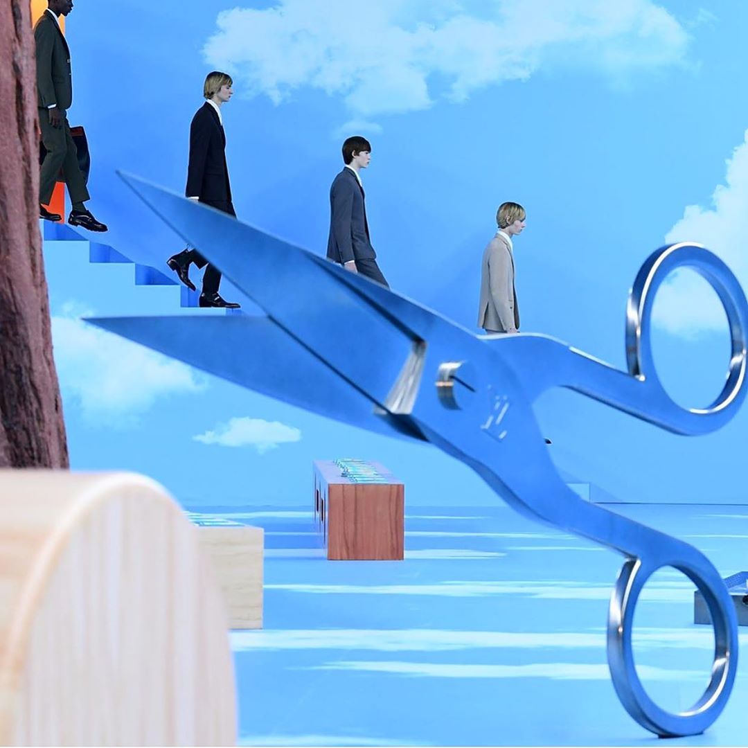 C’est dans un décor onirique inspiré du Truman Show, avec son ciel bleu et ses quelques nuages, que le designer a choisi de faire défiler sa collection FW20. Et pour compléter ce décor surréaliste, des outils XXL ont été plantés au milieu de la salle !