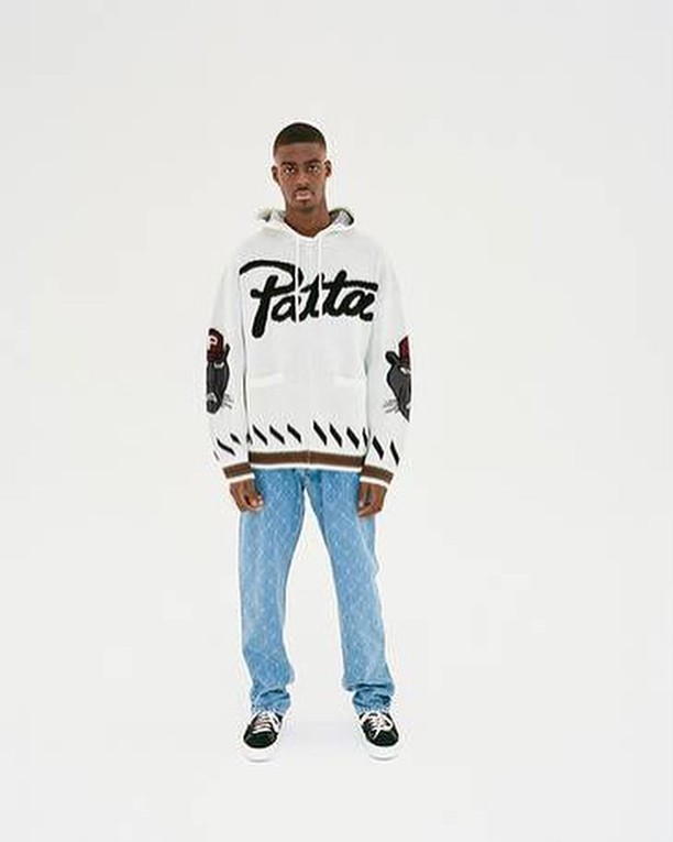 On retrouve donc ces combinaisons de référence dans toute la collection, que ce soit avec des imprimés camouflages retravaillés, des vestes universitaires recouvertes de l’iconographie Patta, des articles imprimés cachemire, un hoodie zippé en laine ou encore les nombreuses pièces ornées d’un motif paisley. La collection comportera également des accessoires comme des casquettes ou des boucles d’oreilles.