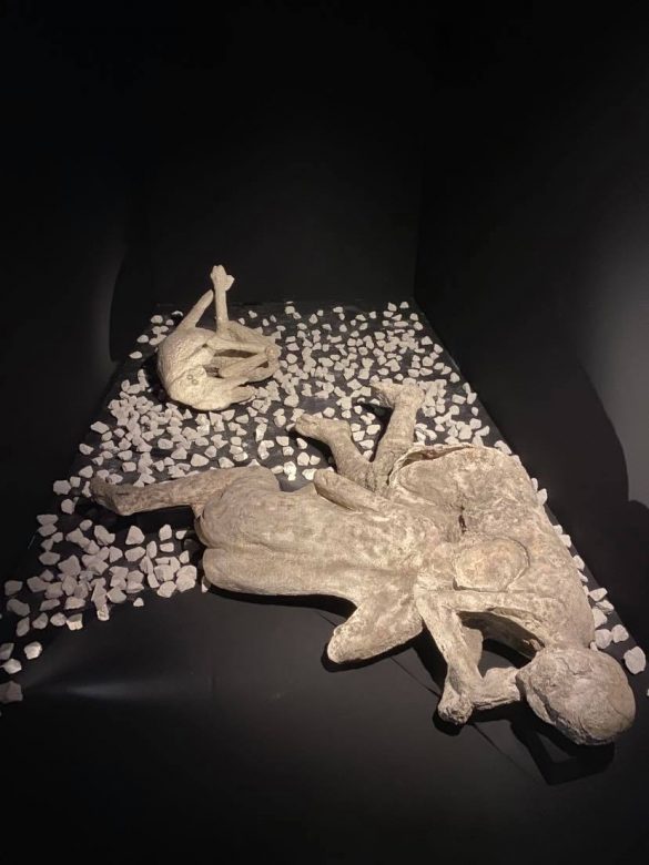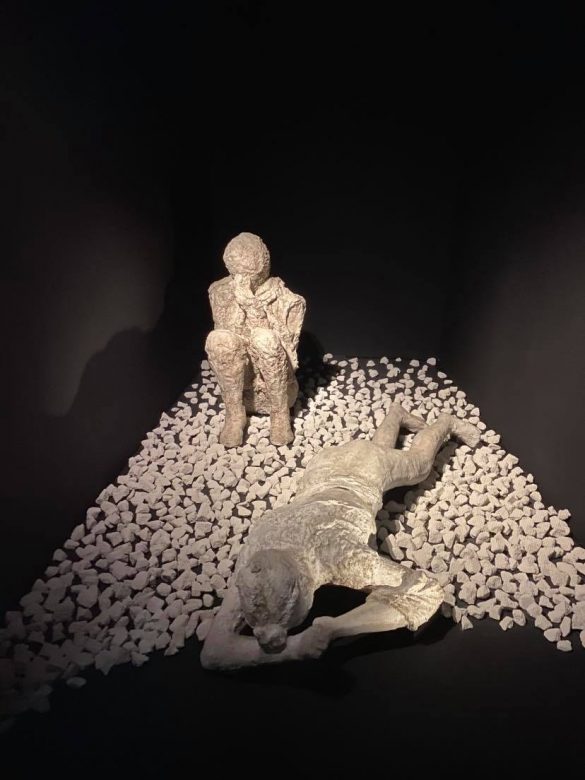 C’est au cœur des rues de la ville ancienne qu’est plongé le visiteur. Un écran géant projette le Vésuve, ce volcan meurtrier qui se réveille pour dévorer la ville. Les objets retrouvés sont exposés avec des indications plutôt claires. Au milieu de l’exposition se trouve une petite allée, lorsque le visiteur entre, il y trouve à droite et à gauche la copie des moulages : les corps recouverts de cendres et figés dans la position exacte de la mort. Des écrans arborent les murs en expliquant chaque recherches menées par archéologues, anthropologues, botanistes, et encore pleins d’autres. L’exposition sur Pompéi est une expérience à vous couper le souffle, elle est encore disponible jusqu’au 27 septembre 2020.