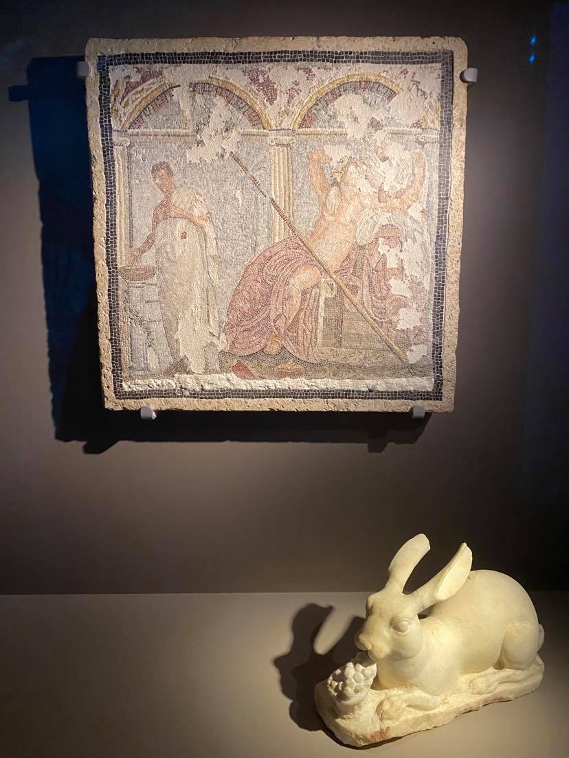 Mosaïque aux tesselles représentant Dionysos et Ariane