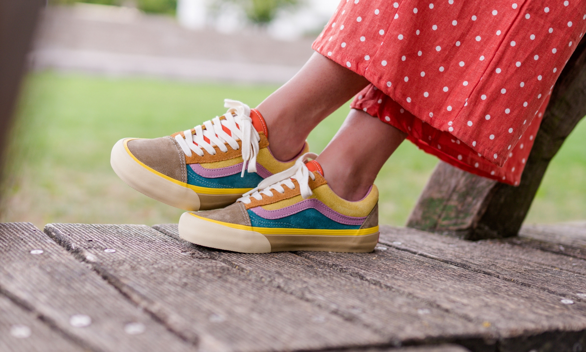 La paire indétrônable de la rentrée c’est bien évidemment la Vans old skool vlt. Avec ses touches de rose, de marron et de jaune, c’est la paire automnale qu’il vous faut ! Cette paire se trouve chez les principaux retailers pour 100 €.