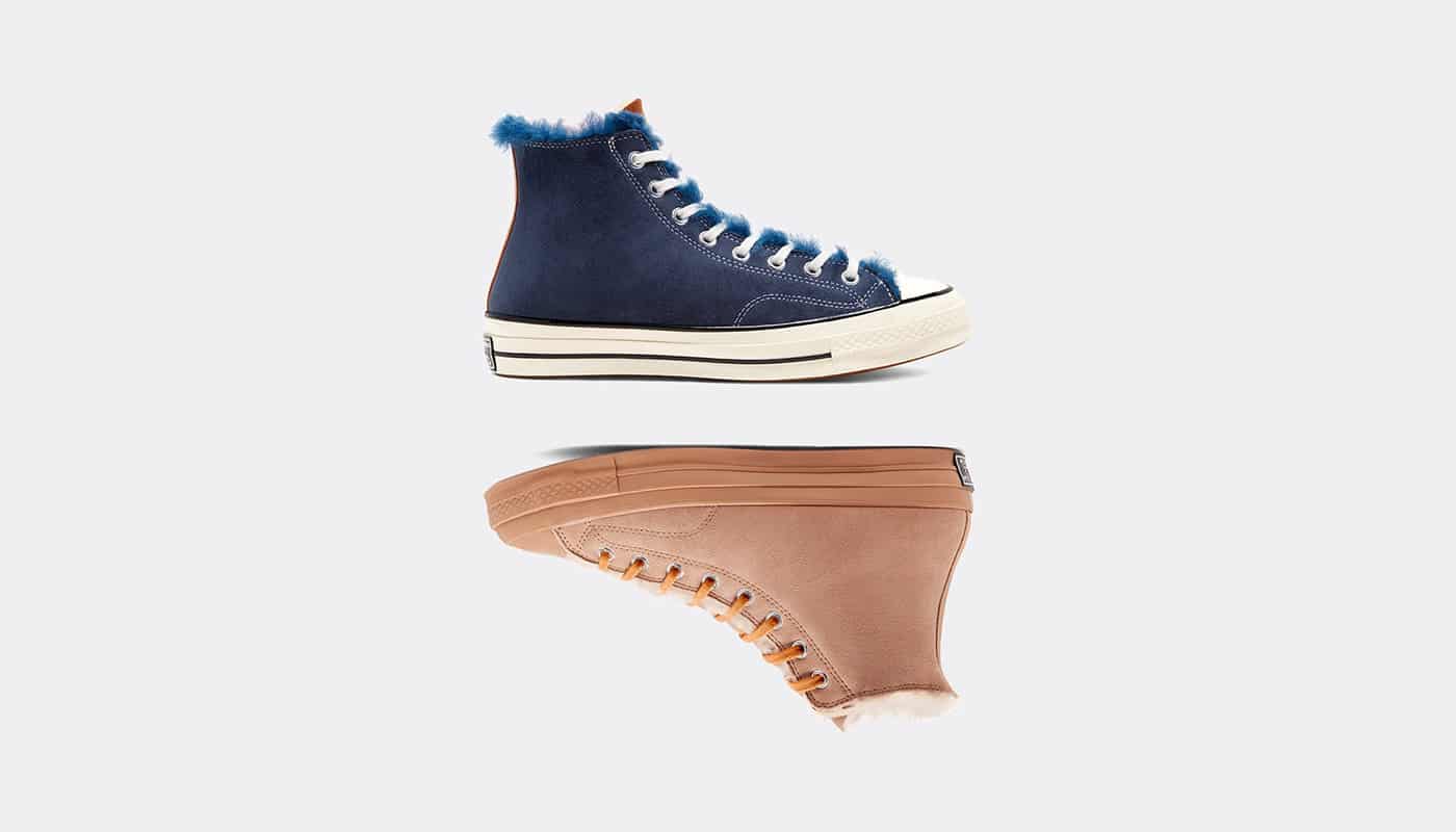 Converse proposent cette semaine le pack Converse Chuck 70 High Sherpa qui ne laissera pas indifférent les plus frileux d’entre nous. Deux coloris sont proposés, un bleu/rose et un beige. La particularité de ces deux paires se trouve à l’intérieur ! Converse a effectivement prévu une doublure intérieure en laine de mouton pour rester bien au chaud pendant l’hiver. Ces deux modèles sortiront le 14 décembre sur le site Converse ainsi que chez les principaux retailers au prix de 130 € par paire.