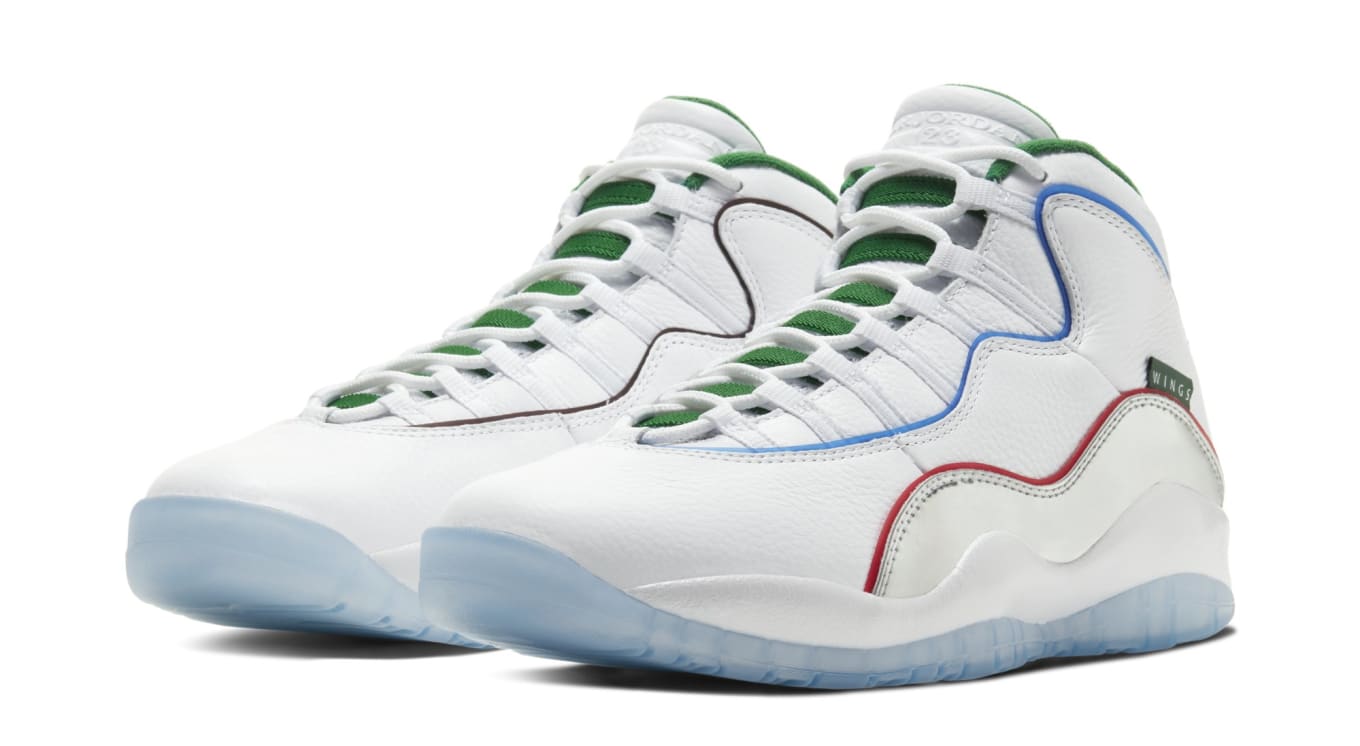 Pour fêter le 70ème anniversaire du All-Star Game, Jordan Brand nous présente une paire inédite cette semaine, la Air Jordan 10 Wings. Cette paire est principalement composée de cuir blanc accompagné par des liserés bleu et rouge et de quelques détails verts sur la languette et l’intérieur de la chaussure. La Air Jordan 10 Wings sortira le 15 février sur le site Nike ainsi que chez les principaux retailers au prix de 190 €.