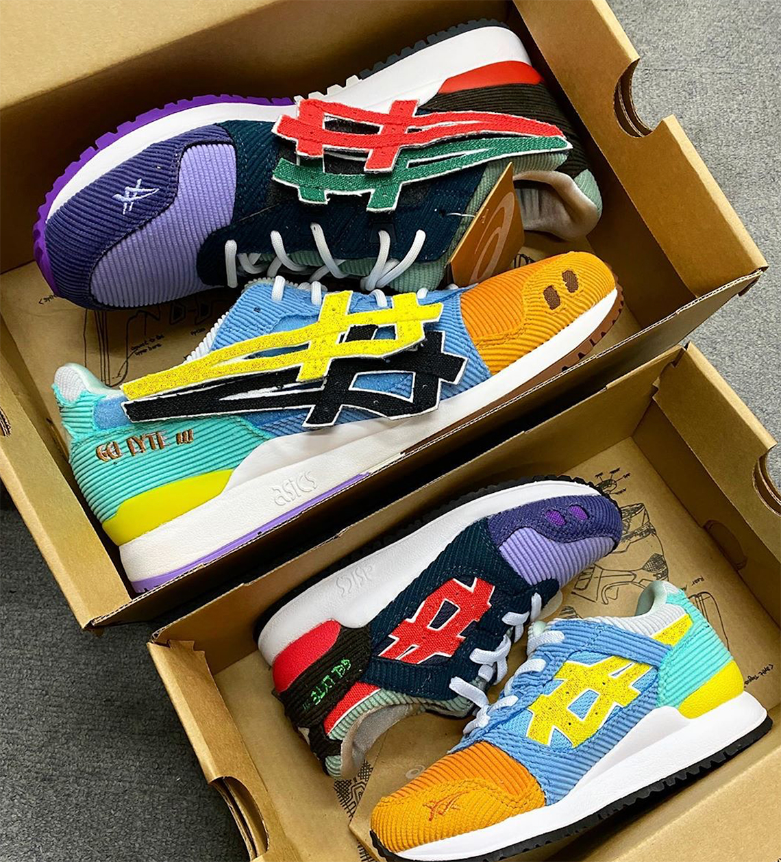 ean Wotherspoon x atmos x asics Gel-Lyte III LA to JapanSean Wotherspoon, Atmos et Asics se sont associés afin de célébrer les 30 ans d’Asics et les 20 ans d’Atmos. Et le résultat de leur travail se nomme Sean Wotherspoon x Atmos x asics Gel-Lyte III LA to Japan. La paire dispose de deux pieds aux couleurs différentes : l’un est bleu, jaune et orange tandis que l’autre est noir, rouge, violet et vert. La paire est vendue avec de nombreux patchs de plusieurs couleurs et plusieurs jeux de lacets différents. La Sean Wotherspoon x Atmos x asics Gel-Lyte III LA to Japan est sortie le 27 juin chez Atmos au prix de 165 €.