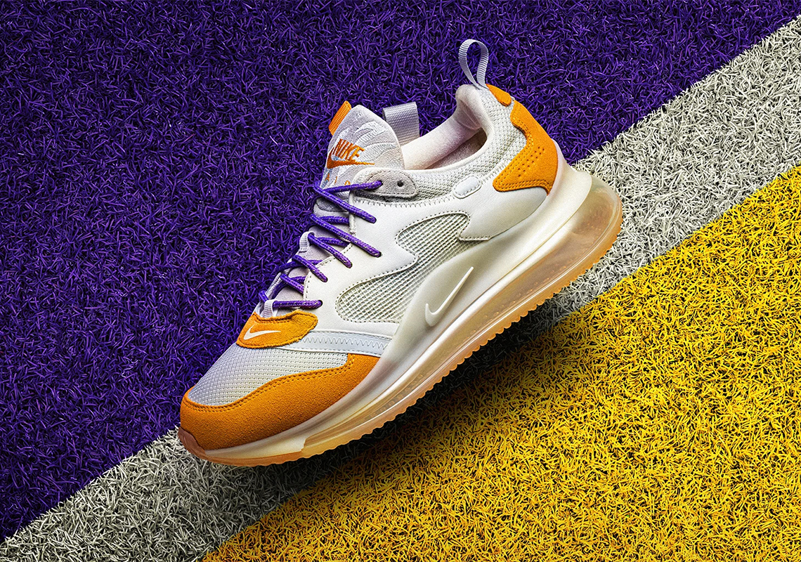 Cette semaine, Nike nous propose une seconde collaboration avec un joueur de la NFL, cette fois-ci avec Odell Beckham Jr. La Nike Air Max 720 OBJ Canyon Gold est habillée de blanc ainsi que de détails orange et violets sur la toe box, le talon ou bien les lacets. La paire sortira le 28 décembre sur le site Nike ainsi que chez les principaux retailers au prix de 200 €.
