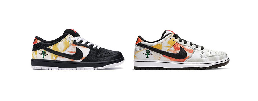 Nike présente cette semaine une nouvelle paire de Dunk déclinée en deux colorways, la Nike SB Dunk Low Tie-Dye Black et White. Les deux paires composées de cuir sont habillées de noir et blanc ainsi que de motifs tie-n-dye oranges et jaunes. Un logo brodé « alien » est également présent à l’arrière de la chaussure. La Nike SB Dunk Low Tie-Dye Black sera disponible sur le site Nike ainsi que chez les principaux retailers au prix de 100 €. Quant au colorway White, il ne sera disponible que dans une sélection de skateshops au même prix.