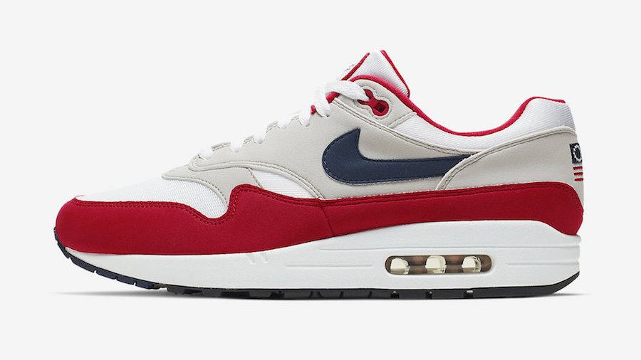Nike a également prévu une paire en l’honneur de la fête nationale des États-Unis, le 4 juillet. La Air Max 1 sortira cette année avec un colorway rappelant le drapeau américain, brodé sur le talon de la chaussure avec les 13 étoiles. Ce colorway est une version inversée de celui de la Air max 1 « Patriot » sortie en 2003 avec le bleu navy devenu rouge. Cette paire sortira le 28 juin sur le site Nike ainsi que chez les principaux retailers au prix de 140 €.