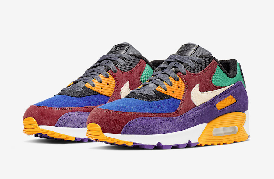 Un mois après la Nike Air Max 90 « Viotech 2.0 », la marque au Swoosh nous propose aujourd’hui la Nike Air Max 90 « Viotech ». Inspirée de la Nike Dunk Low « Viotech » sortie en 2002, cette AM90 en daim possède des empiècements de différentes couleurs : bleu, orange, rouge, violet ou encore vert. Cette paire est disponible dès aujourd’hui sur le site Nike ainsi que chez les principaux retailers au prix de 140 €.