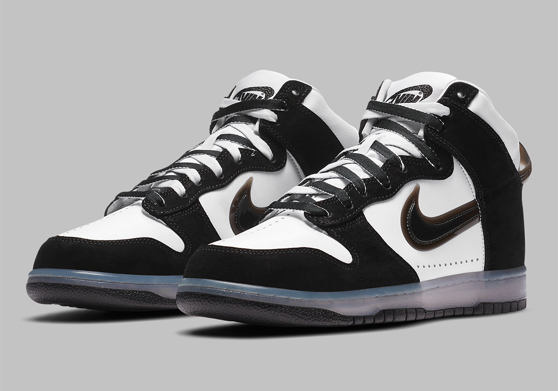 Après la version White sortie exclusivement chez Slam Jam et sur l’application Nike SNKRS, le shop italien et la marque au Swoosh dévoilent la Slam Jam x Nike Dunk High Black. Comme la précédente, cette nouvelle déclinaison se pare d’une base en cuir blanc mais se différencie avec ses empiècements en suede noir. On remarque également la midsole semi-translucide et les lacets blancs et noirs. Cette Slam Jam x Nike Dunk High Black est sortie ce matin chez Slam Jam et sur Nike au prix de 150 €.