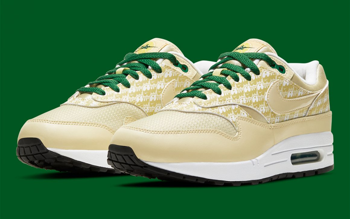 Sortie pour la première fois en 2006 avec la collection Powerall, la AM1 Lemonade fait son retour cette année ! La paire jaune pâle est vêtue de superpositions avec un imprimé « AIR » réfléchissant et d’une touche de vert sur les lacets et la languette. On aperçoit aussi du blanc sur la midsole et la doublure. Cette Nike Air Max 1 Lemonade Powerall était disponible ce matin sur l’application SNKRS de Nike ainsi que chez ses principaux revendeurs au prix de 140 €.
