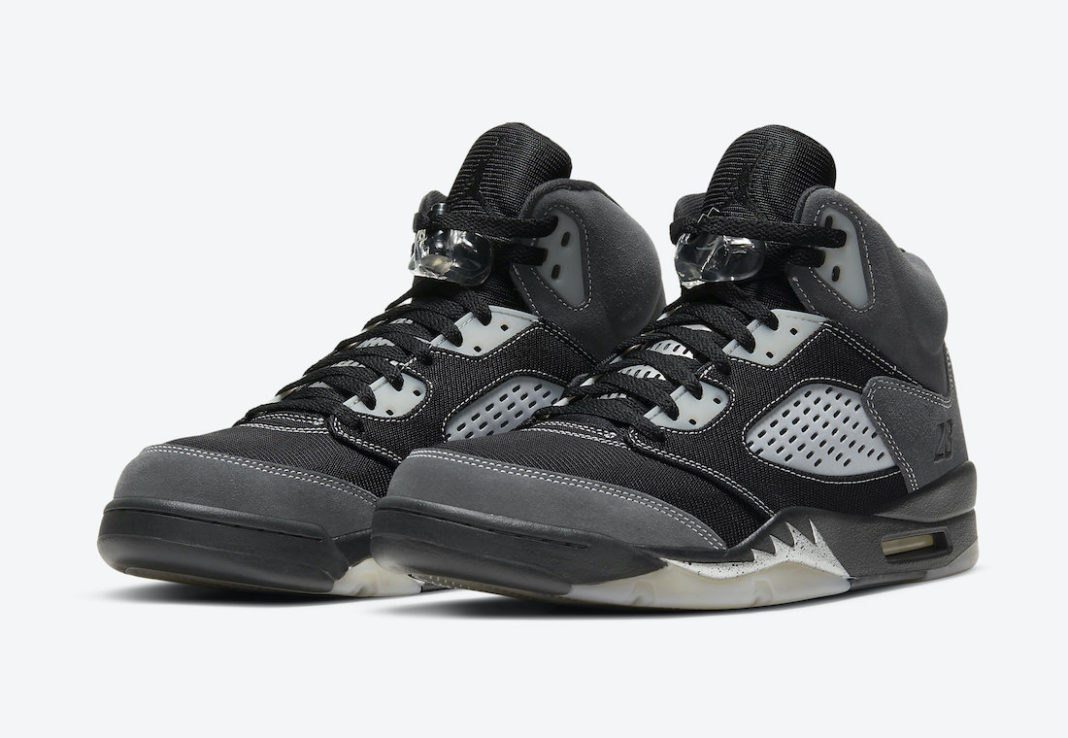 Cette nouvelle déclinaison de la AJ5 est habillée de daim et de textile noir et gris. Des empiècements translucides comme la grille ou les oeillets sont aussi présents. Tous les détails propres à cette paire son bien évidement de la partie ; le numéro 23, l’icy-sole, le lacelock, tout y est ! La paire sera disponible le 6 février chez la plupart des retailers de la marque au Swoosh ainsi que sur son application SNKRS au prix de 190 €.