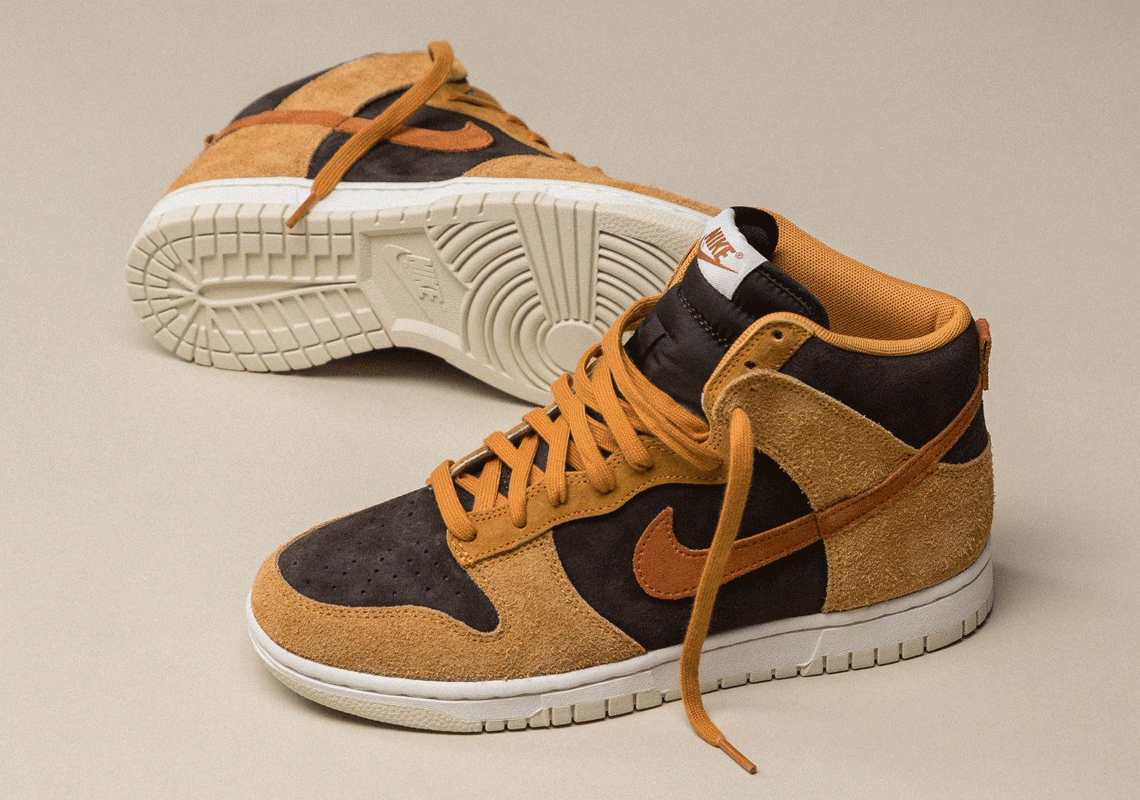 Cette nouvelle déclinaison Premium se pare d’une base en daim lisse marron foncé et de superpositions en daim couleur curry. On aperçoit aussi un Swoosh et des lacets couleur marron/orange sans oublier une midsole blanche et une outsole beige. La paire sortira le 6 février sur l’application Nike SNKRS et chez les principaux revendeurs au prix de 120 €.