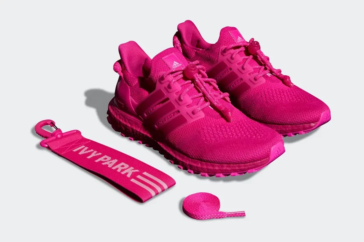 Pour terminer, cette année chez Adidas on retrouve une paire en collaboration avec la marque de Beyoncé. Cette collection capsule « Ivy Heart » est composé de vêtements, d’accessoires et d’une Ultra Boost rose fuchsia. La base de la paire est également en ton sur ton. Différentes matières se mêlent sur la tige principale, le renfort arrière, les empiècements ou encore la midsole. Au niveau des lacets, ils restent sur une base rose avec quelques touches de blanc et un système de serre lacets. Pour finir, en accessoire, un hangtag Ivy Park en tissu est ajouté.