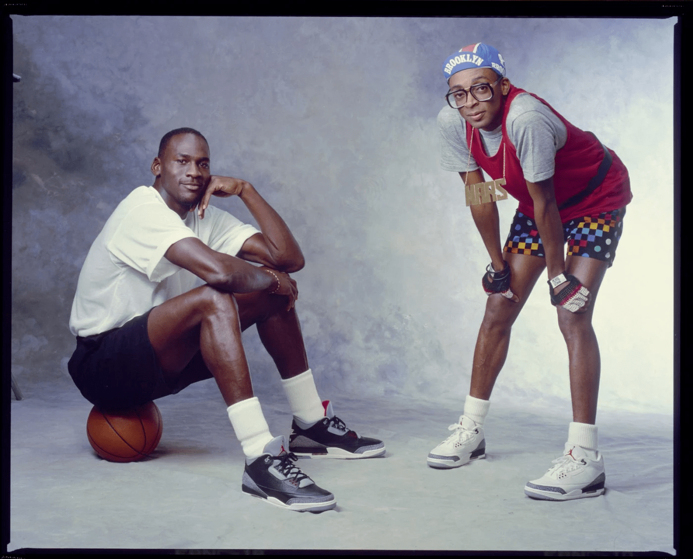 À partir des années 80, le cinéma américain fait son débarquement mondial à l’aide de l’émergence d’une génération de réalisateurs qui vont valoriser « l’American way of life ». Si New York acquiert le statut de ville cinématographique, c’est grâce à l’un de ses enfants nommé Spike Lee. En 1986 pour son premier long métrage « She’s Gotta Have It », il va exposer la Air Jordan I (modèle encore récent car sorti en 1985) aux yeux du monde entier à l’aide du personnage culte de Mars Blackmon (qui deviendra par la suite une égérie marketing des Air Jordan, multipliant les apparitions dans les campagnes publicitaires). Spike Lee est un passionné de sneakers et sa cinématographie le reflète, avec un passage culte dans Do the Right Thing (1989) où la Air Jordan IV White Cement fera son apparition.