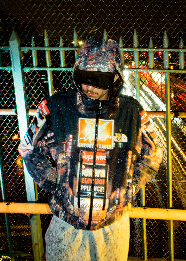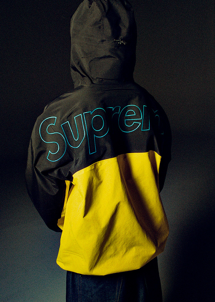 Pour cette collection, Supreme et The North Face dévoilent trois vestes Taped Seam Shell déclinées en coloris gris/noir, jaune/noir ou avec une représentation de Times Square. On y retrouve le branding TNF sur l’avant de la veste et celui de Supreme dans le dos ainsi que sur la capuche. Petit plus, on remarque un empiècement transparent au niveau de la manche gauche qui permet de voir sa montre.