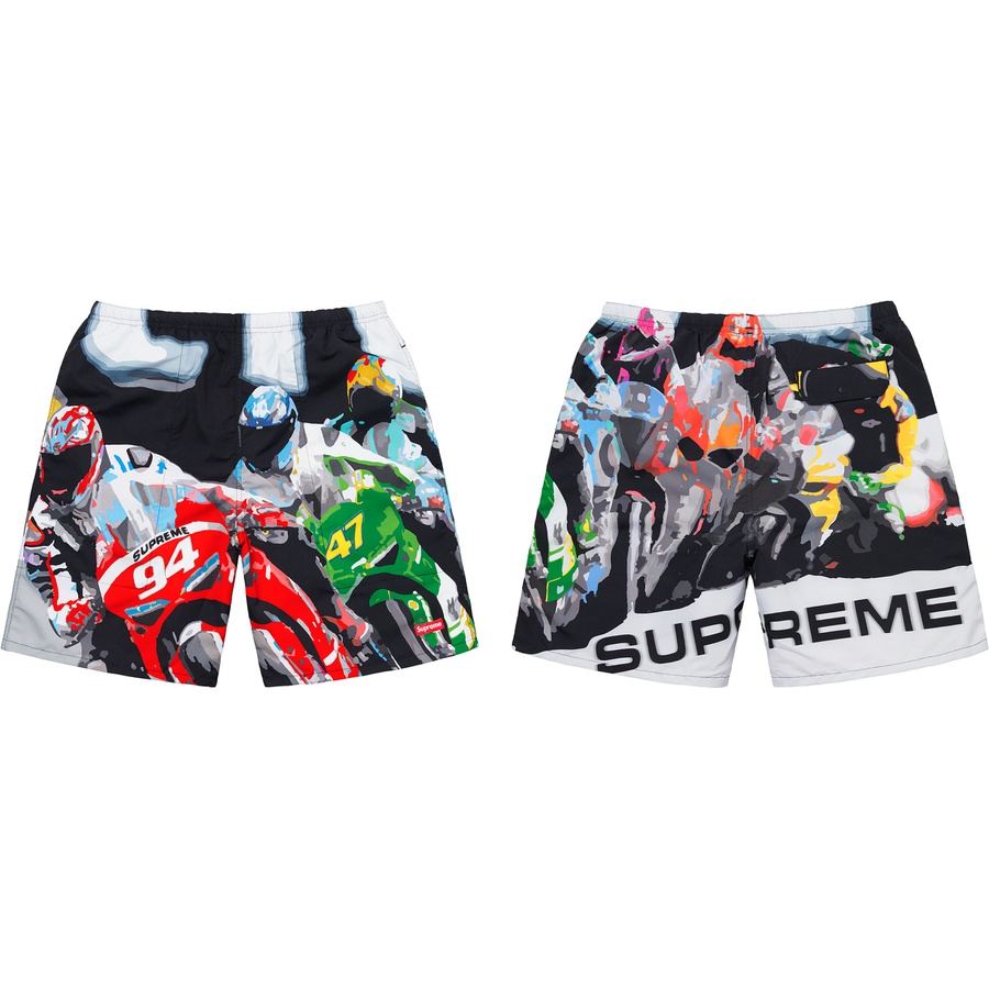 Nous retrouverons également cet ensemble Supreme Racing composé d’un water short et d’un soccer jersey.