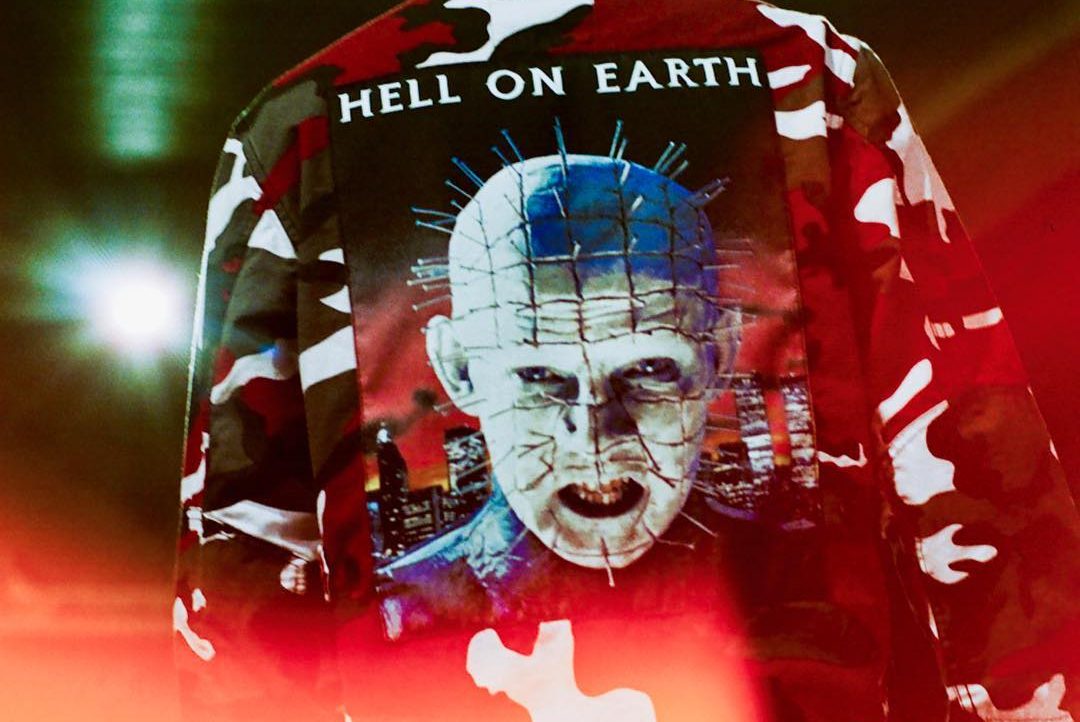 La mention « Hell on Earth » et les portraits de Pinhead habillent une collection capsule extrêmement réussie avec des ensembles jerseys, des t-shirts, hoodies et de nombreux accessoires. Mais les pièces les plus marquantes restent le set de vestes avec l’affiche du film dans le dos ainsi qu’un ensemble trench pantalon dans des tons monochromes.