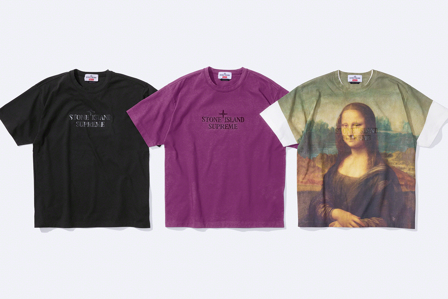 Après Uniqlo, c’est au tour de Supreme et Stone Island d’utiliser la célèbre oeuvre du Louvre. Les deux logos s’ajoutent à un imprimé Mona Lisa présent sur deux des items de la collection. Une veste à capuche et un tee-shirt empruntent l’incontournable figure de Léonard de Vinci, pour former des pièces plus qu’originales. Les deux articles seront aussi disponibles en noir, ainsi qu’un coloris supplémentaire Bordeaux pour le tee-shirt.