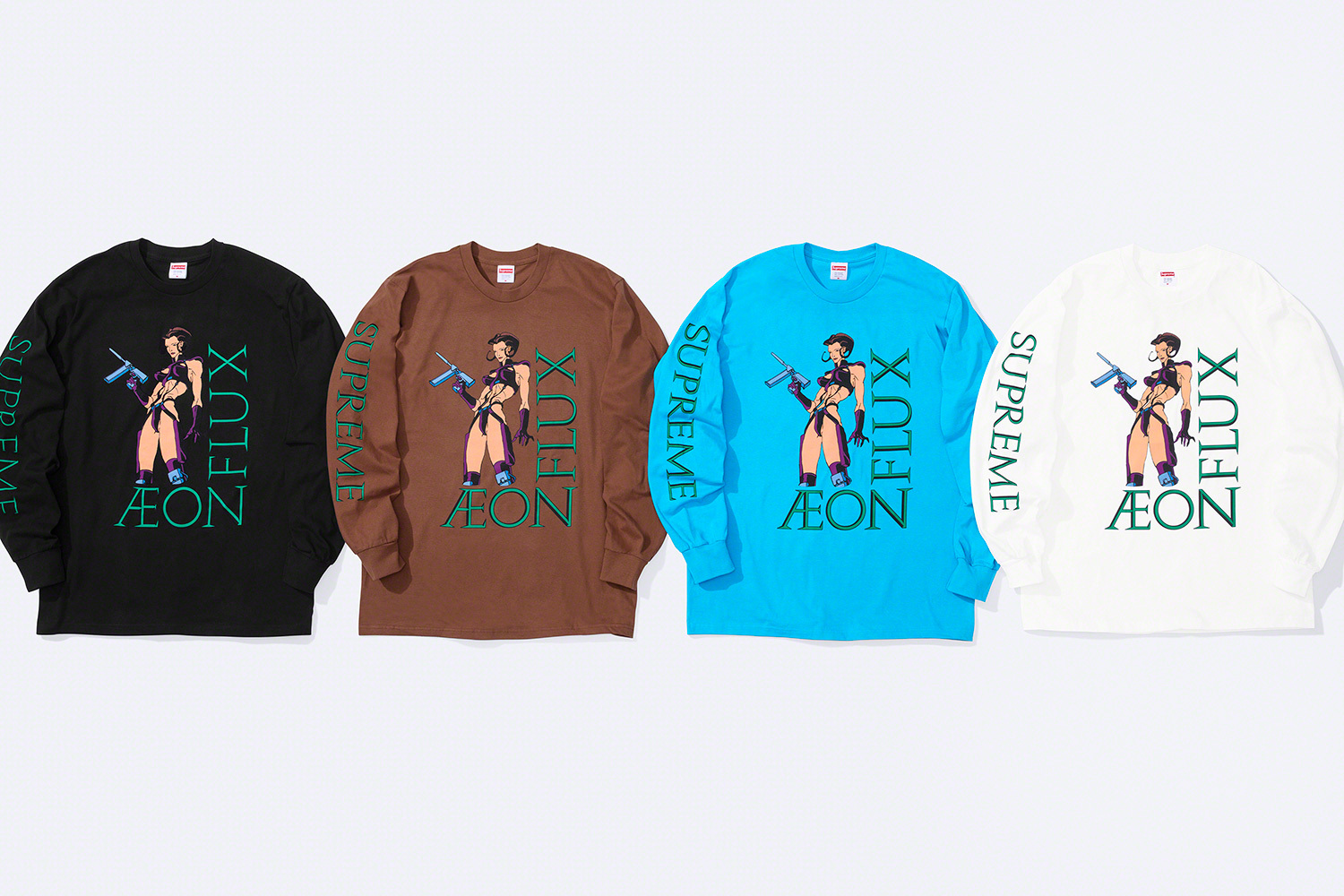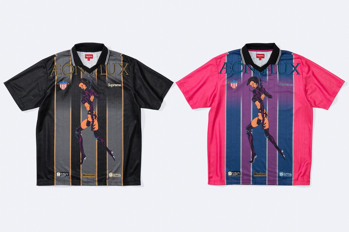 Pour débuter cette nouvelle saison, Supreme collabore pour la première fois avec la série d’animation fantastique Æon Flux au design novateur et cyberpunk. Une esthétique qui colle particulièrement à la marque et qui annonce une collection réussie.